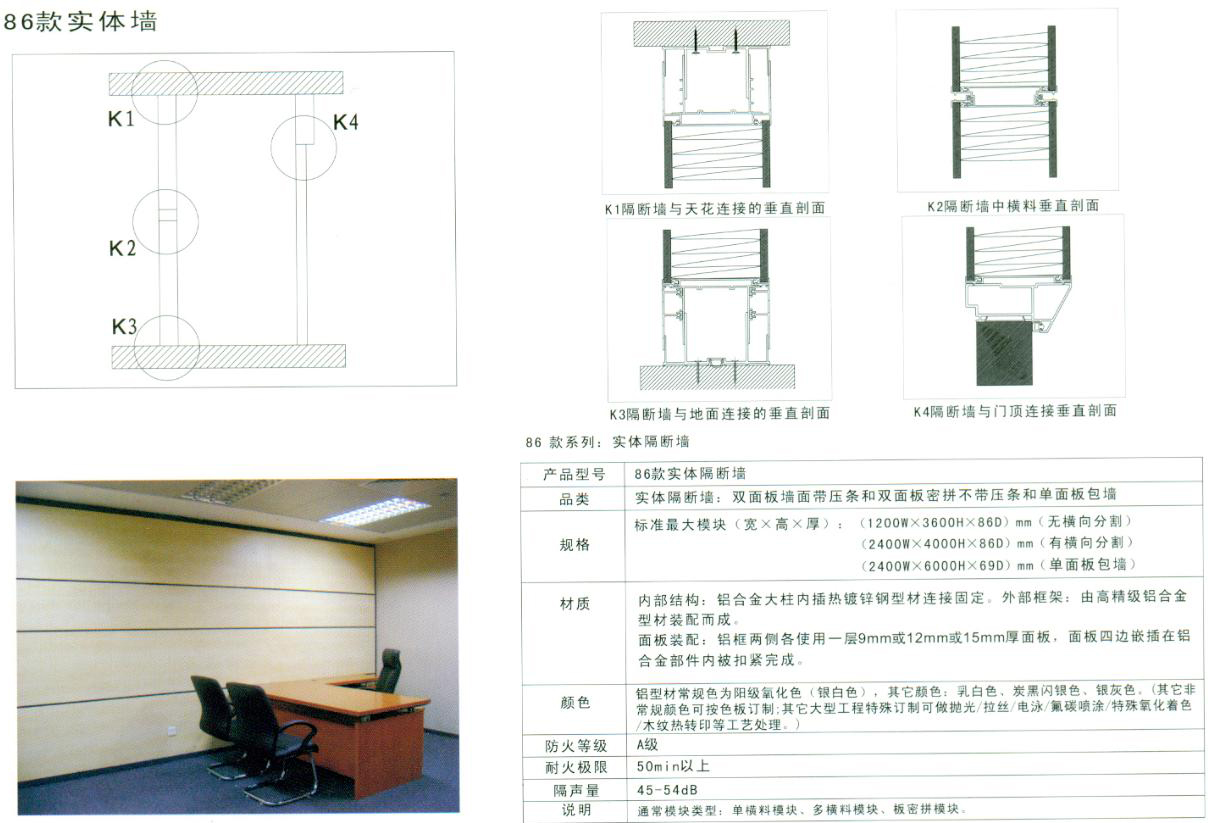 左图为86mm双面高隔断剖视图