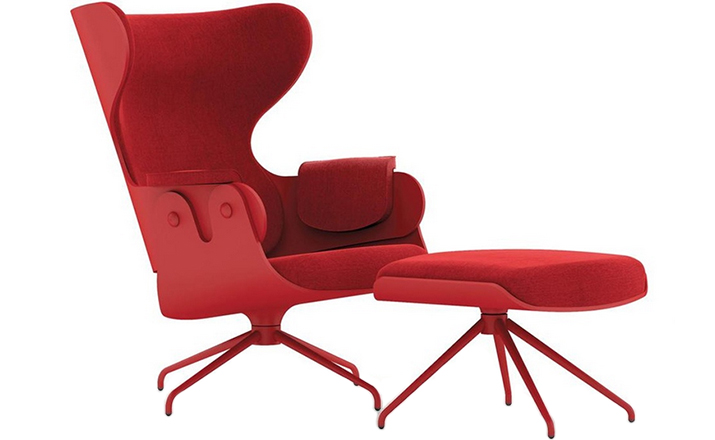 西班牙设计顽童 Jaime Hayon 2010 年在米兰家具展上再次吸引所有人的目光,Jaine Hayon 与西班牙家具厂牌 BD Barcelona Design 合作的 Showtime 系列家具自推出后俨然成为Jaime Hayon 个人的经典代表作,在 2010 年加入了新成员 Showtime Lounger 休闲椅,当中似乎不难发现有着 Charles & Ray Eames Lounge Chair and Ottoman 的影子,重新诠释这张20世纪经典椅款 Hayon 对设计大师致敬的同时,也注入更多 Hayon 幽默诙谐的设计手法。 Showtime 系列家具主要使用的材质和构造包括:优质夹板压模贴木皮而成、进口头层牛皮或进口羊绒布、内部填充高密度海棉、优质铝合金脚架。