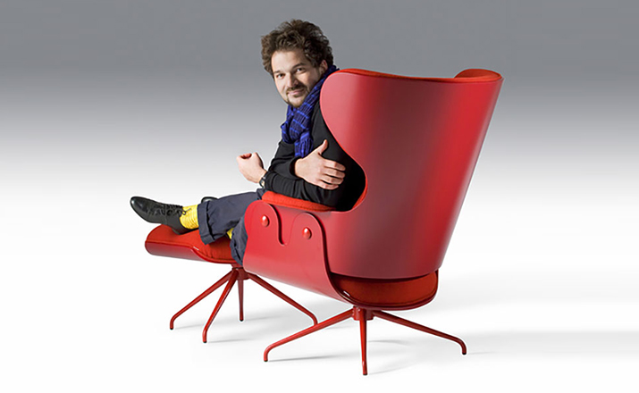 西班牙设计顽童 Jaime Hayon 2010 年在米兰家具展上再次吸引所有人的目光,Jaine Hayon 与西班牙家具厂牌 BD Barcelona Design 合作的 Showtime 系列家具自推出后俨然成为Jaime Hayon 个人的经典代表作,在 2010 年加入了新成员 Showtime Lounger 休闲椅,当中似乎不难发现有着 Charles & Ray Eames Lounge Chair and Ottoman 的影子,重新诠释这张20世纪经典椅款 Hayon 对设计大师致敬的同时,也注入更多 Hayon 幽默诙谐的设计手法。 Showtime 系列家具主要使用的材质和构造包括:优质夹板压模贴木皮而成、进口头层牛皮或进口羊绒布、内部填充高密度海棉、优质铝合金脚架。