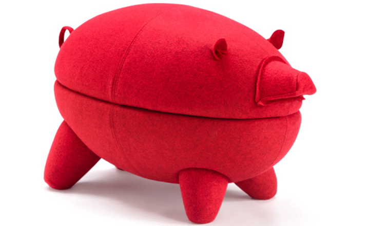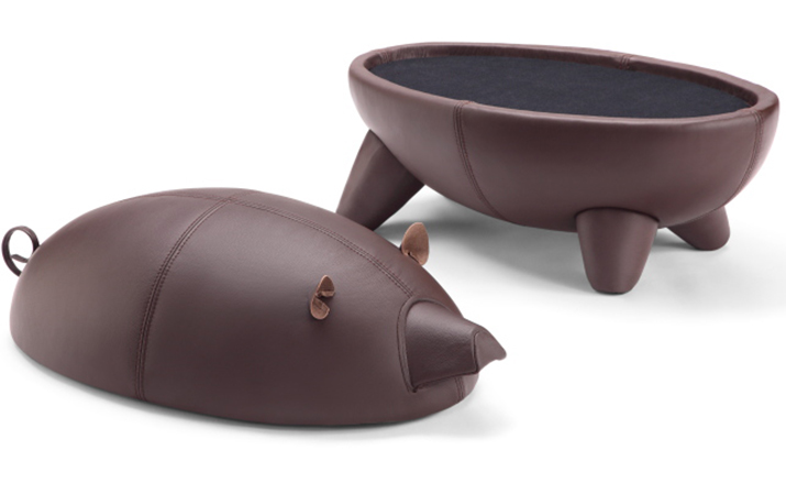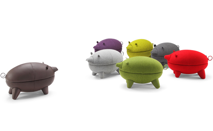 猪圆凳与现实中的动物“小猪”十分形似,设计灵感亦来源于此。基于猪圆凳简约的设计线条,其外表可做成油漆、皮革或布,颜色搭配更为丰富多彩,方便搭配各种场景和范围。猪圆凳同时还是一张多功能的圆凳,取去猪的上半部分,可作为茶几使用,其材质为玻璃钢,下隔层可以放置小物件和杂志等。