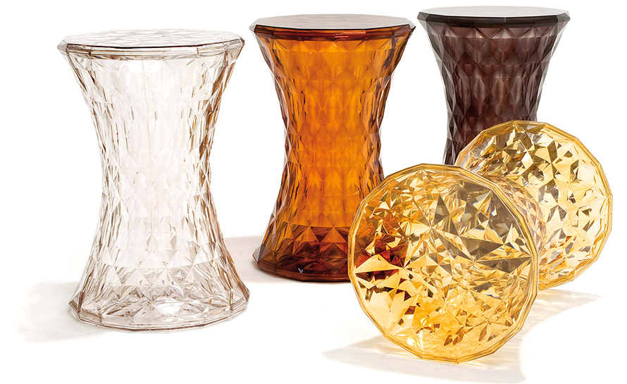 Stone Stool(钻石凳) 是荷兰设计师Marcel Wanders为Kartell公司设计的经典作品。钻石凳沙漏状对称的线形设计,完美的折光和屈光效果;几何小刻面的运用让表面不凡,光线折射后,形成如钻石般璀璨的光芒。舒展拉伸设计的刻面,使产品具有雕塑感。俯瞰产品如万花筒般绚丽多彩,为您呈现出迷幻的别样世界。因其如珠宝般的品质,Stone提供各种珍贵石头的颜色选择。
