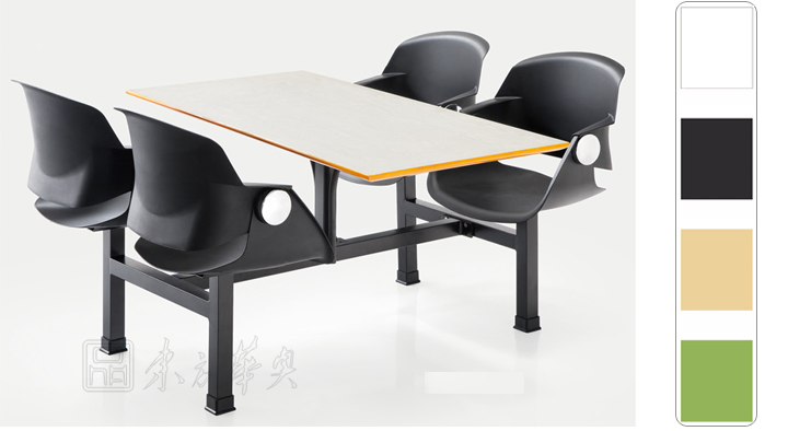 ※   餐厅桌椅连体桌子,桌脚的稳重、构架的端庄,牢固、适用,坐背采用优质PP,款式新宜,搭配靓丽色彩,体现了现代生活快节奏、简约和实用,但又富有朝气的生活气息。