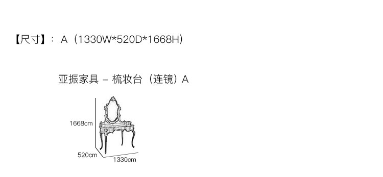 亚振家具 - 梳妆台(连镜) 产品尺寸/示意图
