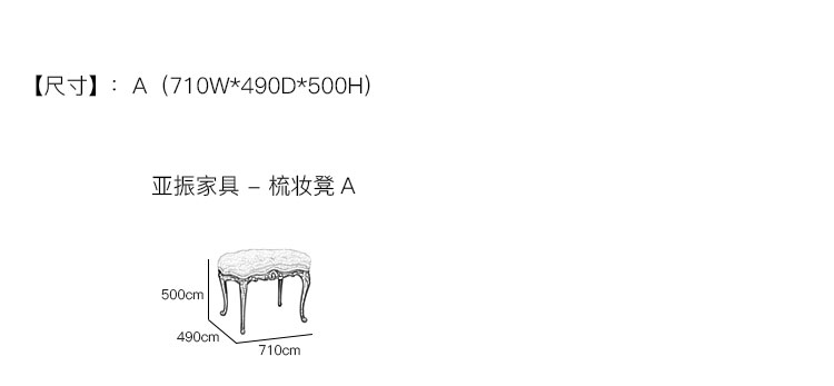 亚振家具 - 梳妆凳 产品尺寸/示意图