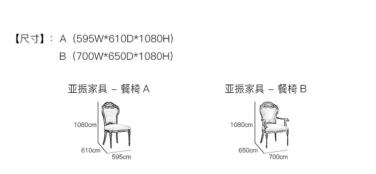 亚振家具 - 餐椅 产品尺寸/示意图