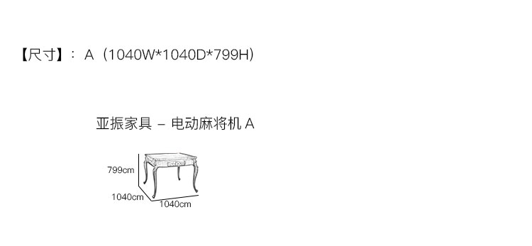 亚振家具 - 电动麻将机 产品尺寸/示意图