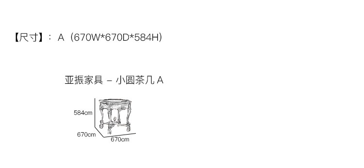 亚振家具 - 小圆茶几 产品尺寸/示意图