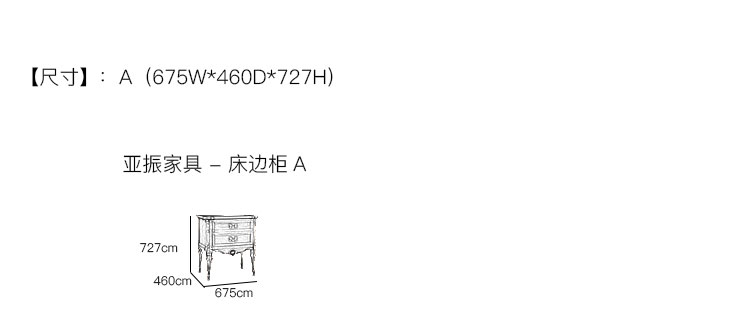 亚振家具 - 床边柜 产品尺寸/示意图
