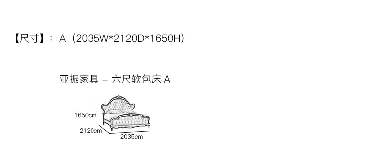 亚振家具 -六尺软包床 产品尺寸/示意图