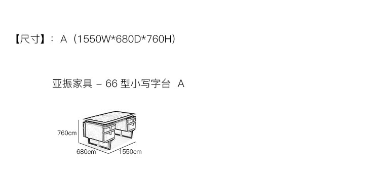 亚振家具 - 66型小写字台 产品尺寸/示意图
