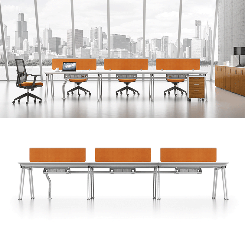 1、钢制脚架,实用高端大气; 2、整齐划一、人性方便的桌面铝合金过线系统。 |