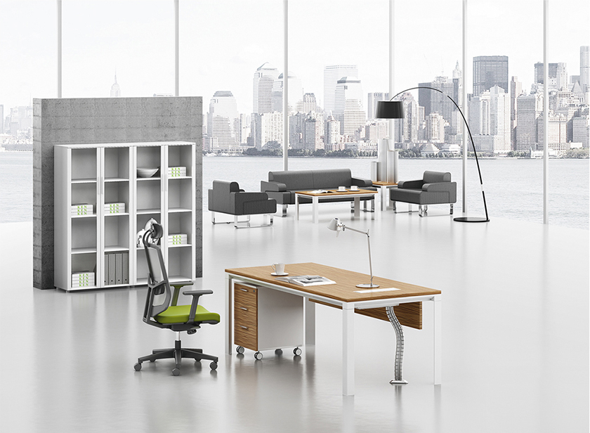 | 移动柜,可带软包方便沟通时使用,小家具,大用途 | 桌子搭配文件柜,更大的储物空间 |