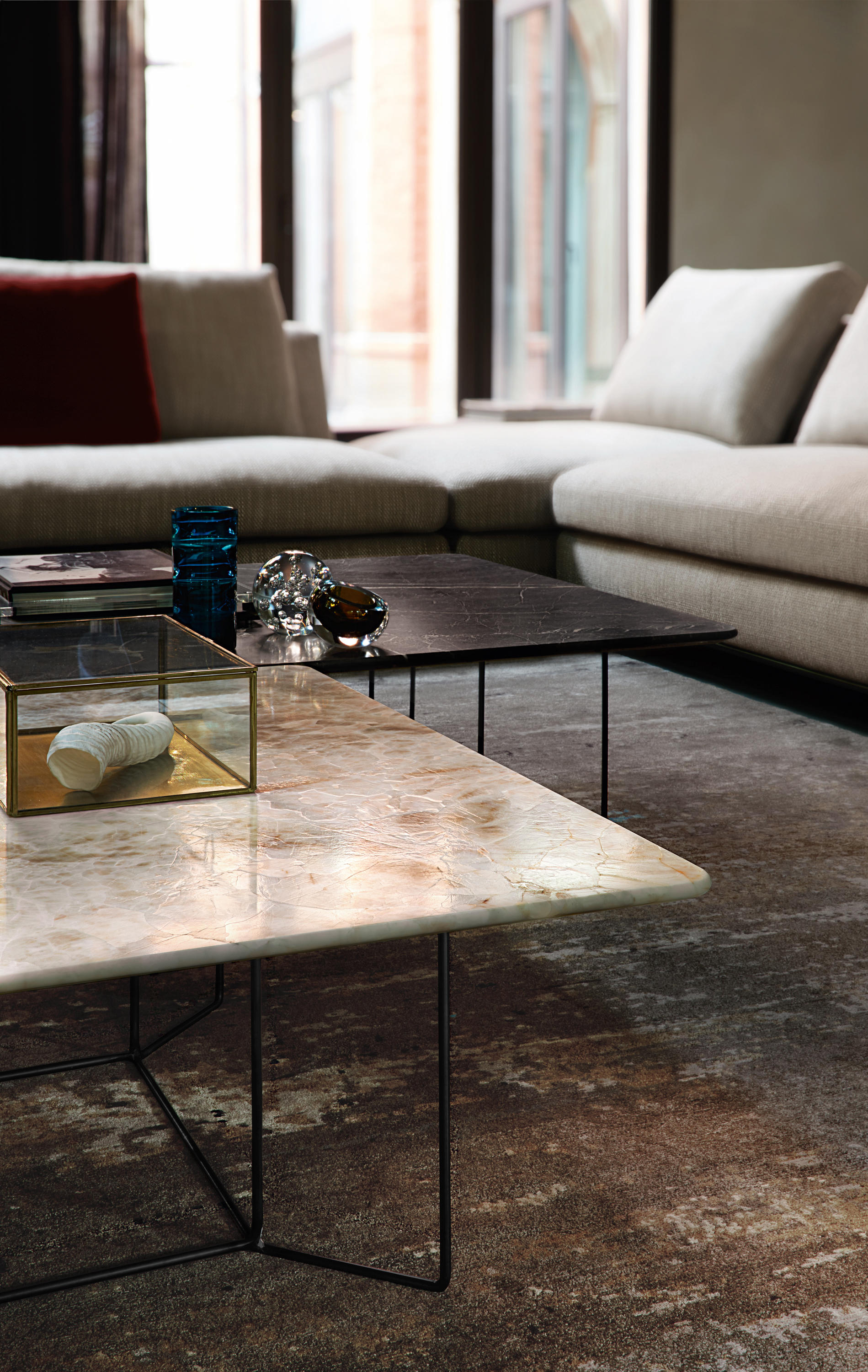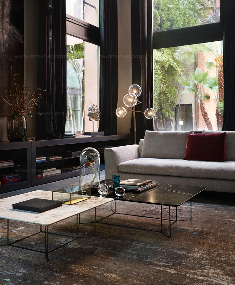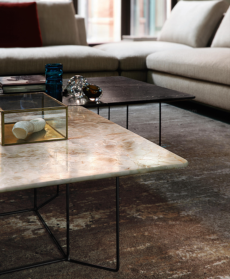 大理石代表着力量和稳重性。就像其他任何材料一样,OKI茶几把这种由元素力量创造的美丽带入了家。大块的天然大理石似乎漂浮在精致的框架之上。有的像交叉着的图案,像树枝一样错落精美。或者像一副抽象的白线画,一个禁止的作品,同时保留着优雅和强大。