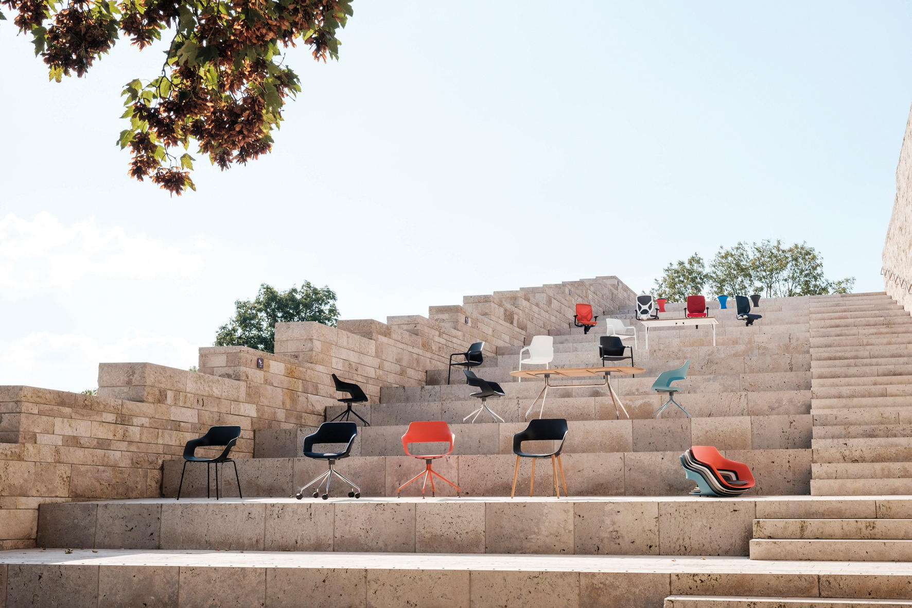 对于Wilkhahn来说,设计师马库斯Jehs和jurgen Laub已经设计出了一张椅子和桌子,这是一个完美的组合。它叫做Occo。Occo结合了巨大的通用性和大量的设计选项,设计语言清晰且可立即识别。背部和两侧的凹处的特殊形状允许椅子堆叠(当一个镀铬的、四腿的金属框架被选中时),同时也提供了高超的坐舒适性。座椅本身是非常坚硬的,但由于它的形状和不同的材料的不同,它的背部非常灵活。