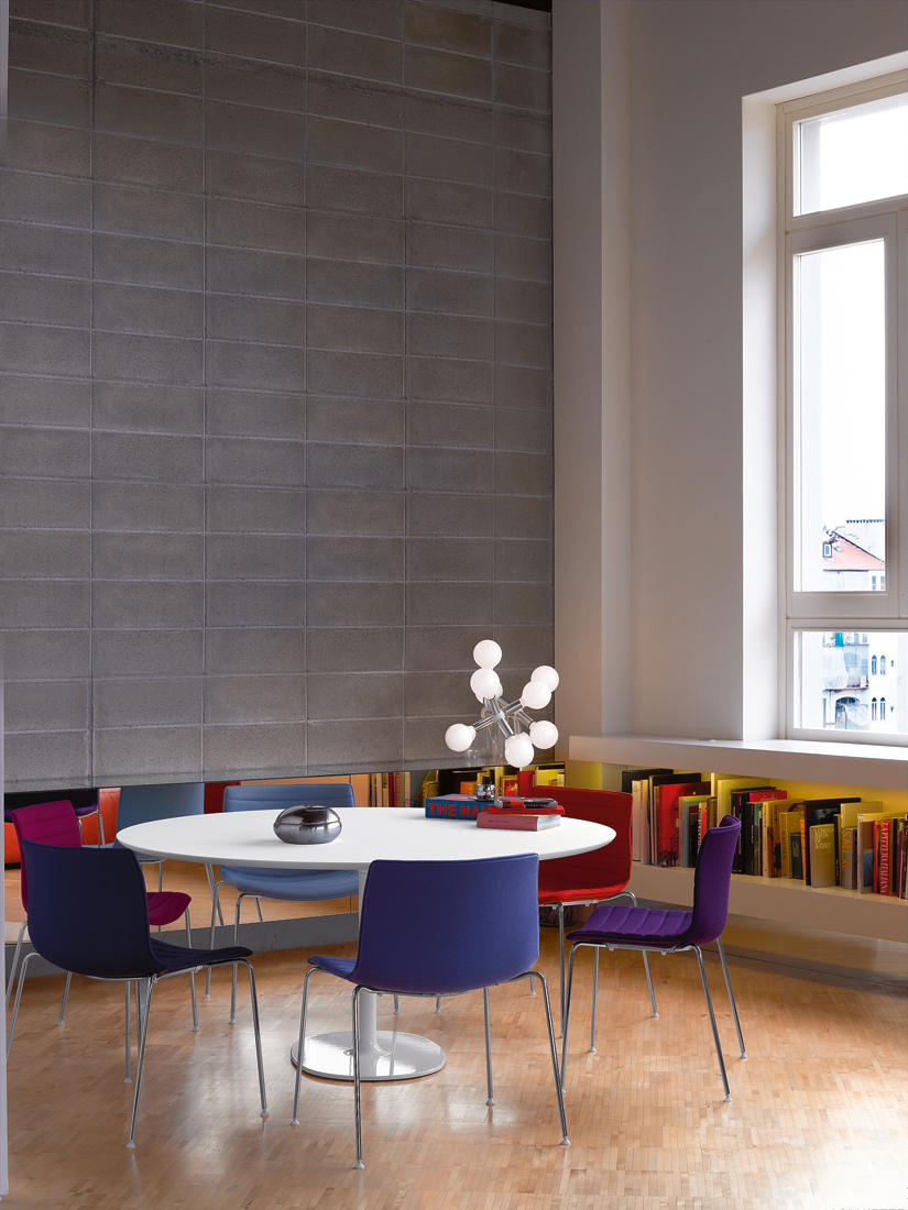 Catifa 46是Catifa 53的小妹妹。同样光滑的外形,清爽,休闲的效率,专为合同使用而设计,需要稍微缩小的空间。极其灵活,Catifa 46扩展了饰面,底座和配件的调色板,以便定制,以适应几乎无限的合同应用程序,而不会改变其基本特征。