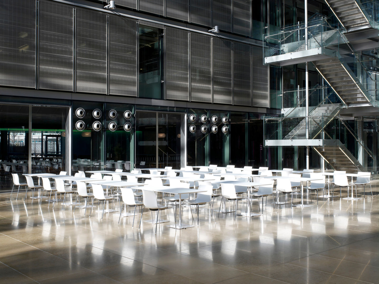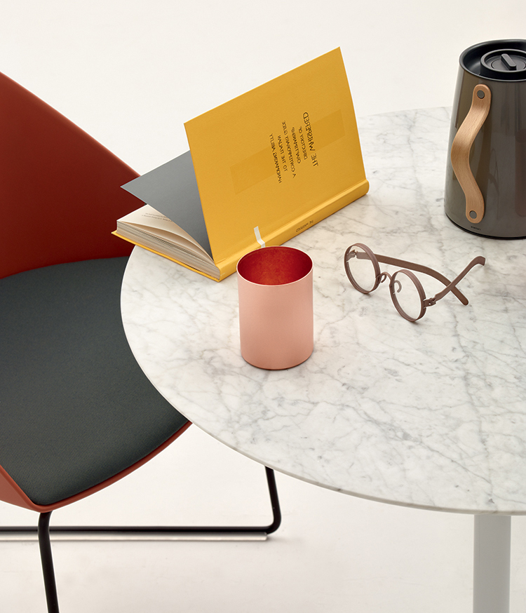 餐台带双椭圆形底座,白色有光泽或黑色哑光粉末涂层钢,顶部为白色压花MDF(厚2.5厘米)或层压板FenixⓇ(厚2,6厘米),有不同尺寸可供选择。 身高74厘米。