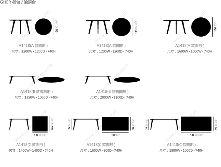 Gher 餐台/洽谈台 系列尺寸/示意图