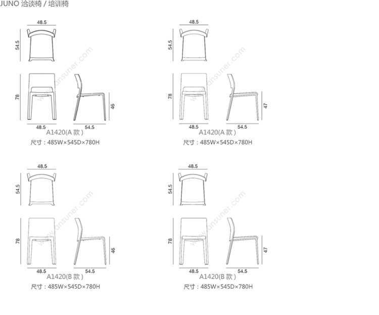 Juno 洽谈椅/培训椅 系列尺寸/示意图