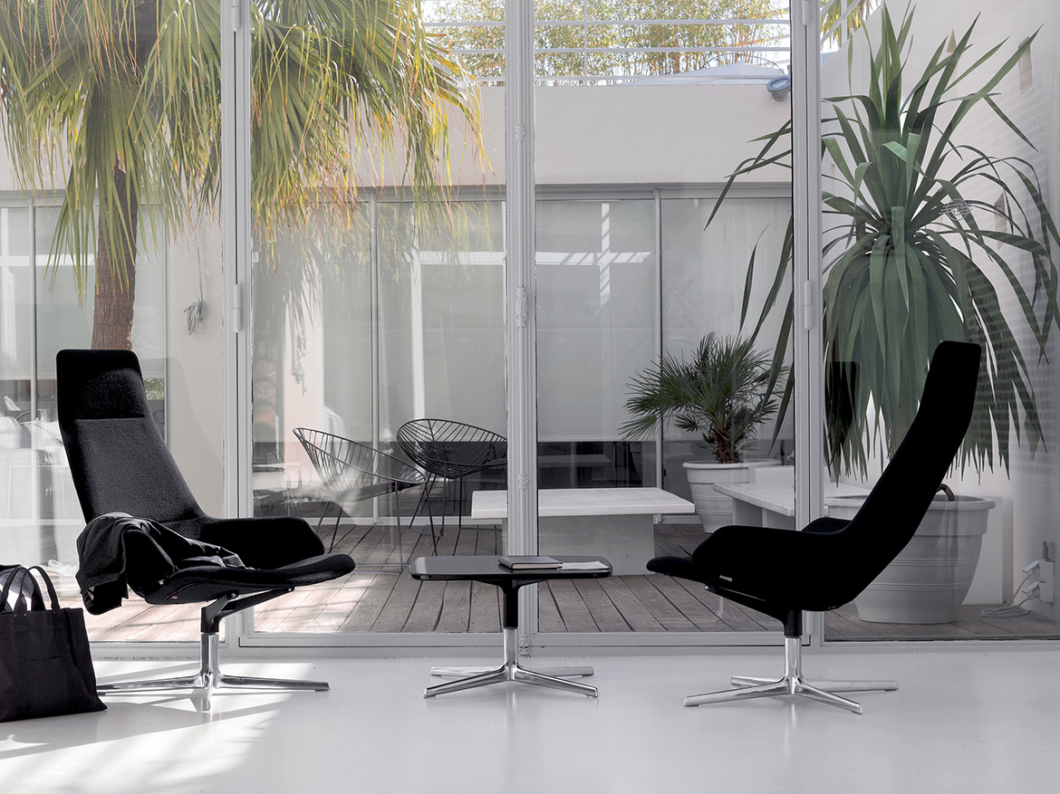 椅子,可堆叠的椅子,休息室,凳子和桌子。椅子采用哑光粉末涂层钢制成,白色,绿色或摩卡。可拆卸的聚氨酯垫可用于室内和室外。 Leaf桌子非常适合在工作或家中放松身心,满足那些喜欢基本设计和轻松存在空间的人们的需求,是Leaf椅子的理想伴侣。