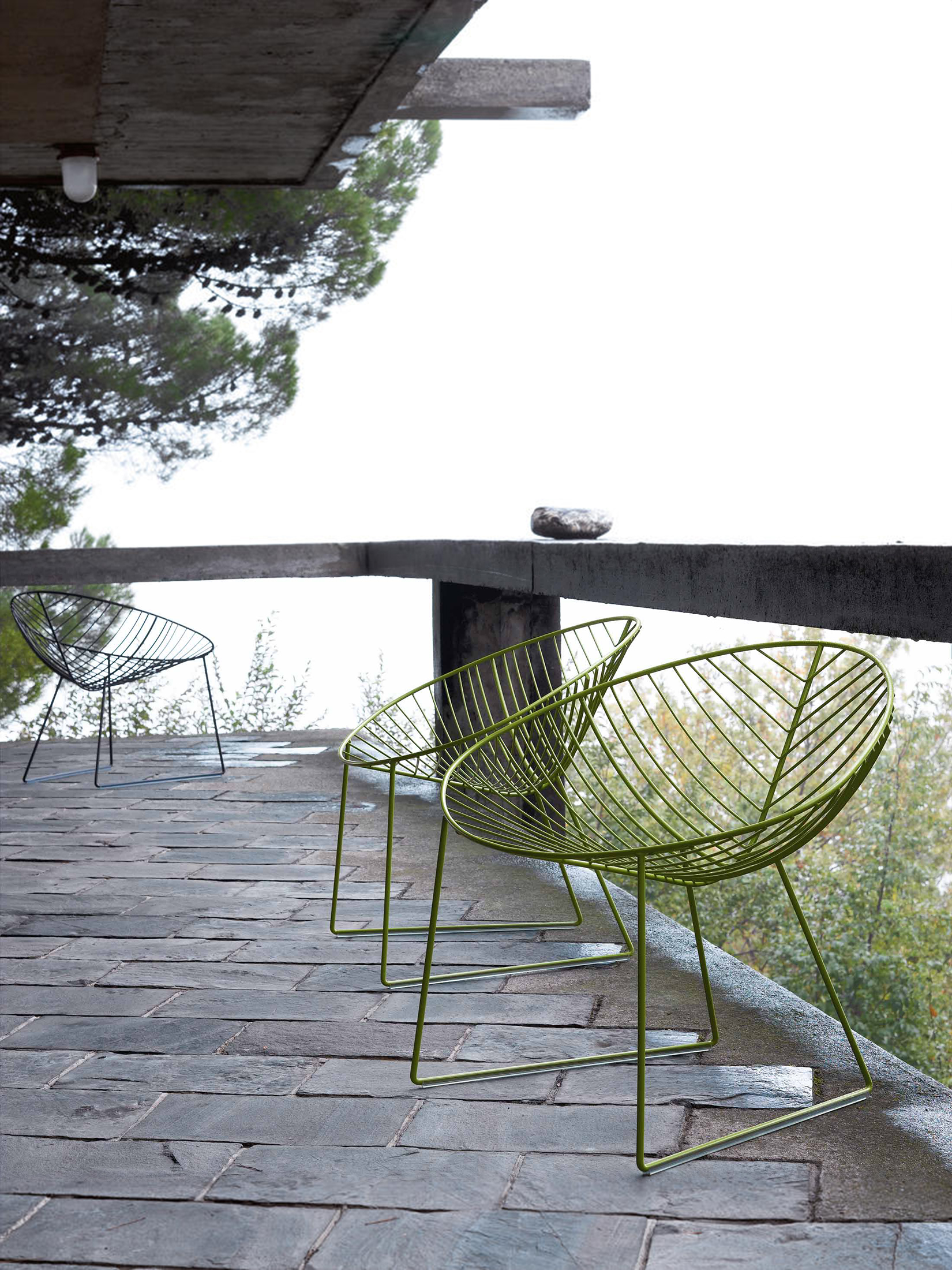 基座有三脚或四脚。全部采用白色,摩卡或绿色涂漆钢材制成。防水HPL上衣有灰色可供选择。