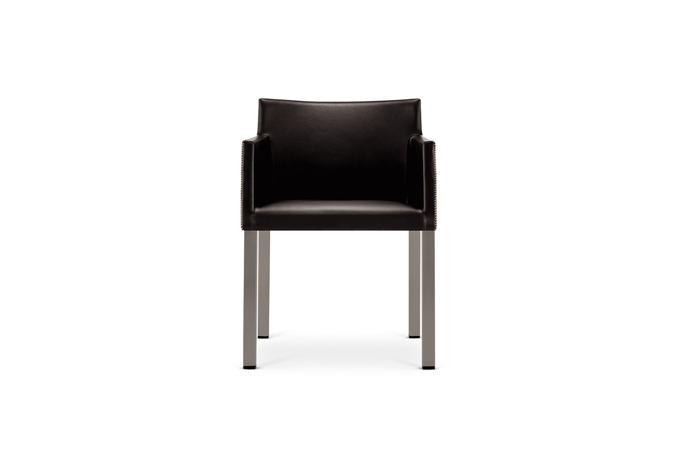 Masai有扶手椅,软垫包括各种皮革和织物。 基本选项包括:四条腿用匹配的皮革或织物覆盖,铝制支架底座带或不带脚轮,铝制五向底座带倾斜和升降机构,带或不带脚轮。