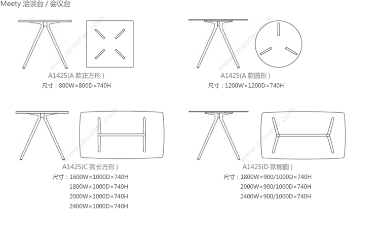 Meety 洽谈台/会议台 系列尺寸/示意图