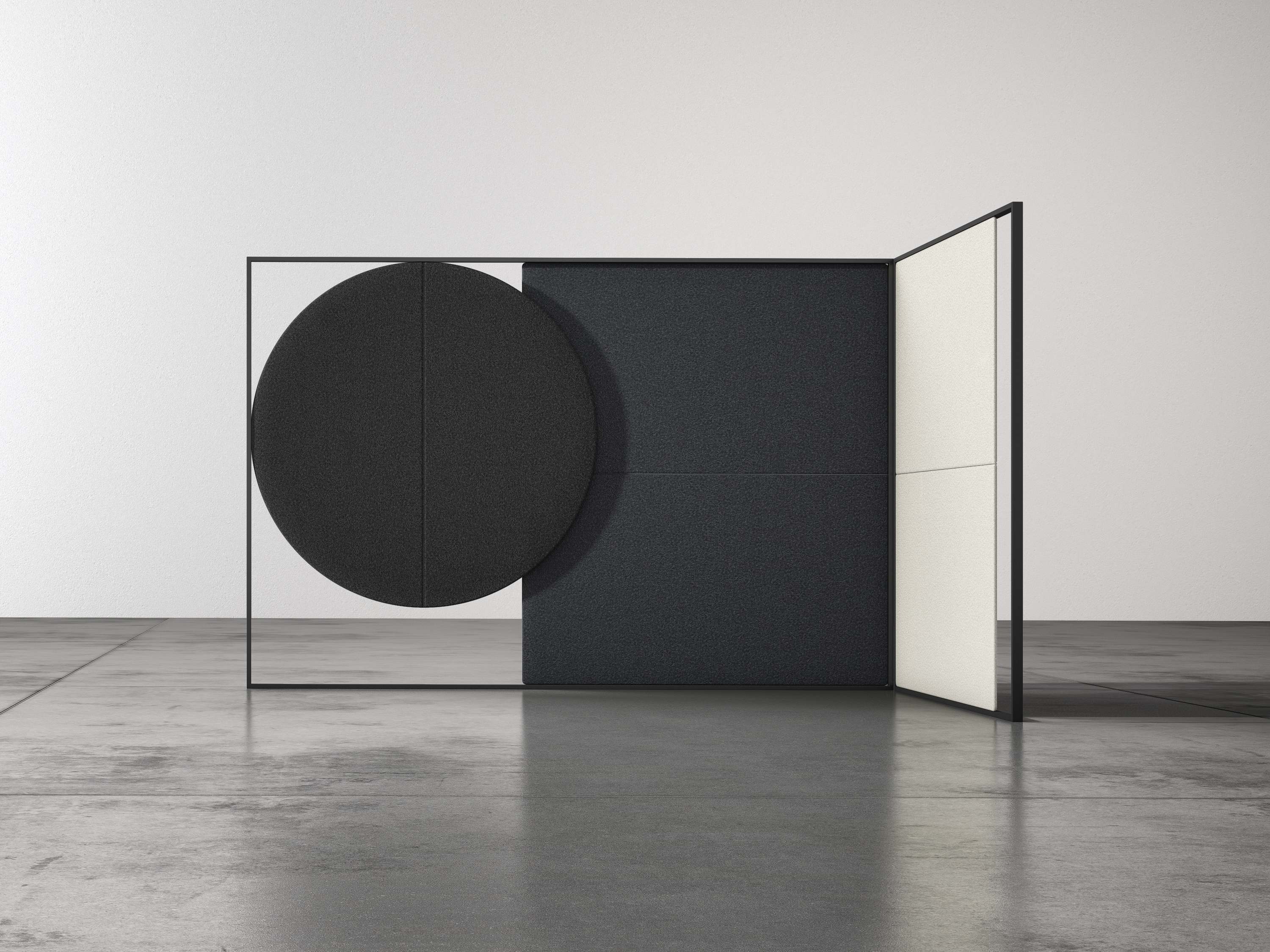 Parentesit是一个装饰模块墙板的集合,为当代共享空间提供舒适。粗体的图形形式有三种形状——圆形、正方形或椭圆形——可以通过添加扬声器或环境光进一步定制,以创建既实用又现代的视觉元素。该系列现在由独立版本补充,这是一个模块化的独立系统,用于在共享的工作空间或协作环境中进行集中注意力或安静对话。