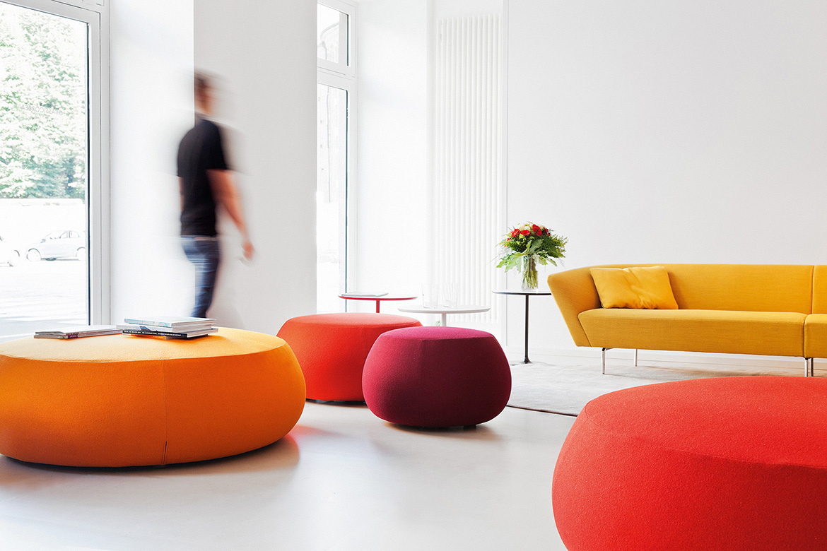 Pix Pouf系列家庭垫脚软凳由日本设计师Ichiro Iwasaki、设计的。形象的轮廓、柔和的色彩运用,饱满的外观,防霉实木内框架或玻璃钢内胆、高密度海绵、进口布艺或皮革(颜色可选)。可适合于不同大小的空间,如会议室、 会议活动的多功能厅,亦或是教室和放松的休闲区,还有家庭使用。这系列有四种尺寸大小 (67,87,137 和 177 厘米直径) 。无论室内外都非常合适,让劳累一天的双脚得到无限的放松。