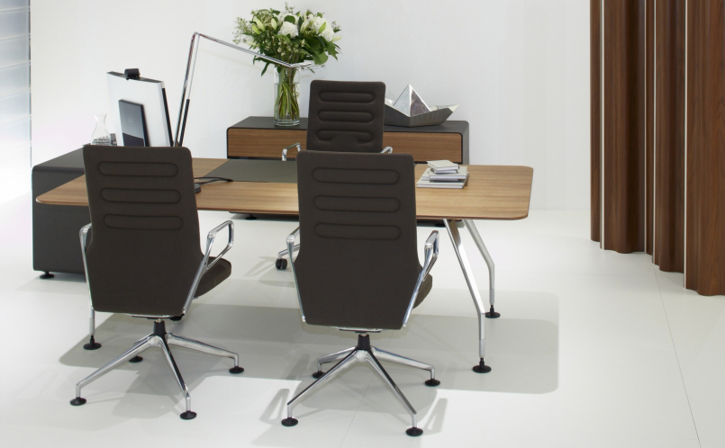 行政办公室计划包括一张大桌子和三个不同的储物家具。 所使用的材料,如铝,木材和皮革,质量特别高,精心制作到最后的细节。 凭借其建设性的轻盈和设计优雅,该计划可以与Ad Hoc办公系统,AC 4椅子(均由Antonio Citterio设计)或Vitra系列经典系列完美结合。