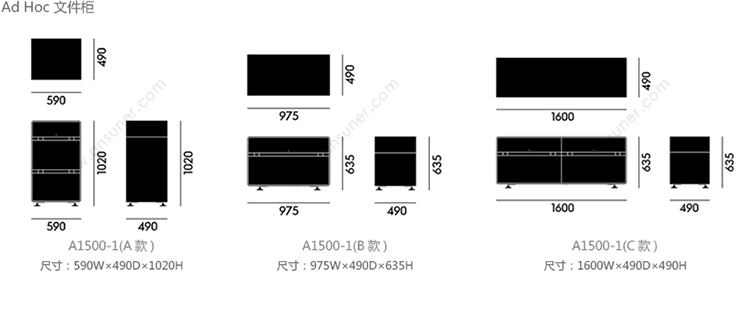 Ad Hoc 文件柜 系列尺寸/示意图