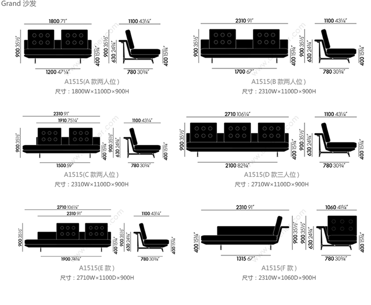 Grand 沙发 系列尺寸/示意图