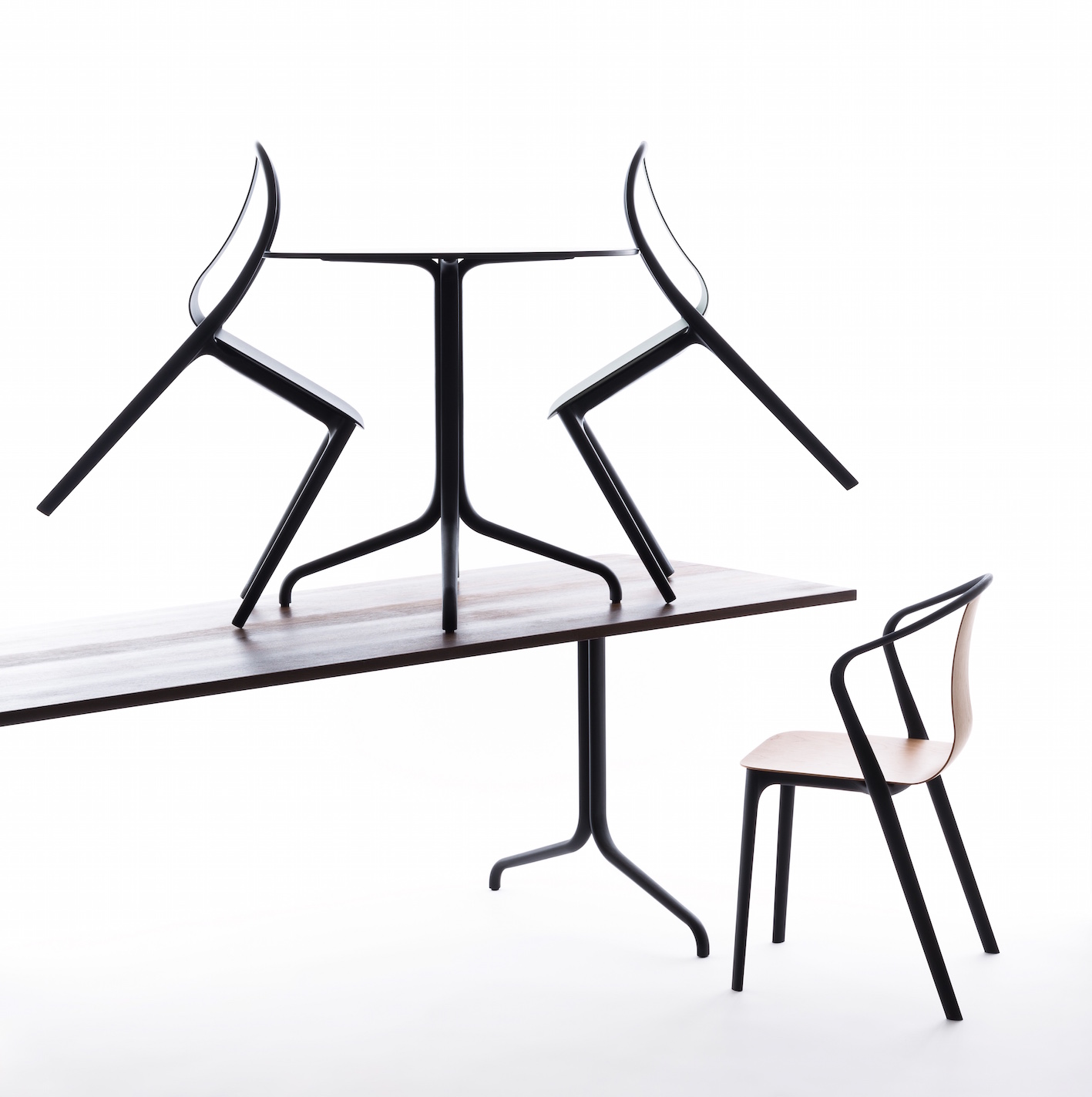 在开发Belleville桌子的同时,Ronan和Erwan Bouroullec定义了两种不同尺寸和材料的版本,专门用作私人餐桌:由天然或深色烟熏橡木或美国胡桃木制成的桌面为Belleville Table带来了尊贵典雅的光环。 该系列表还包括其他适合室内和室外使用的版本,具体取决于材料的选择。