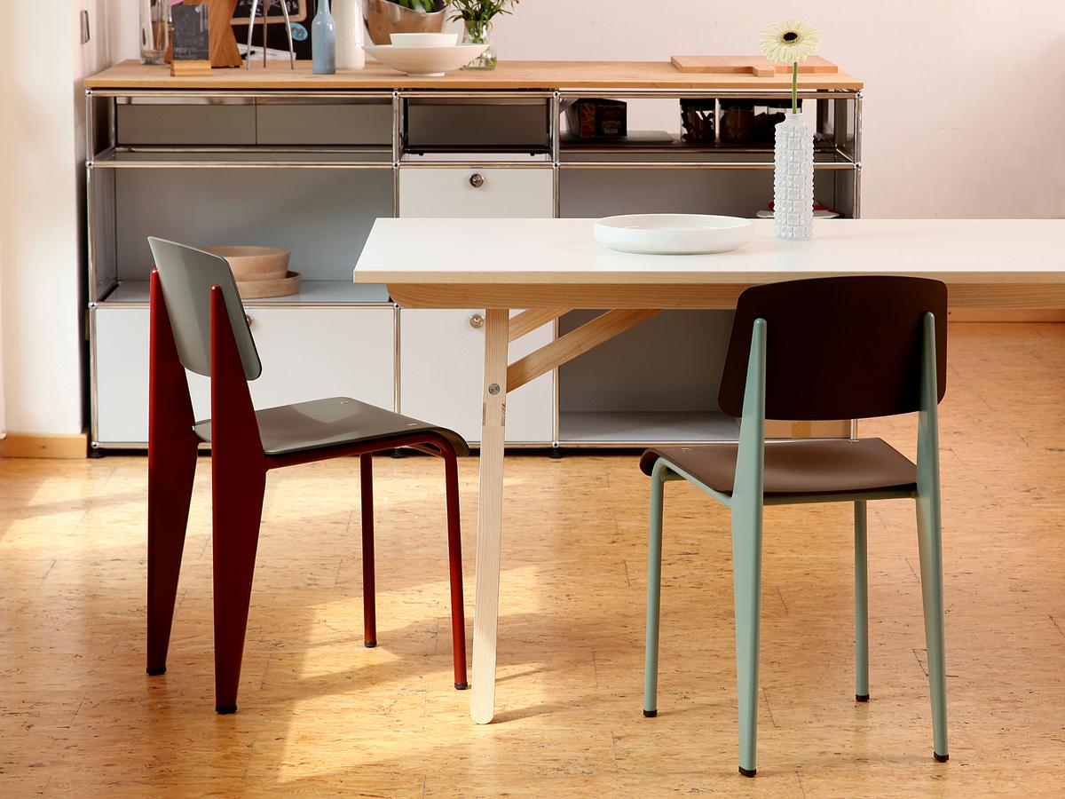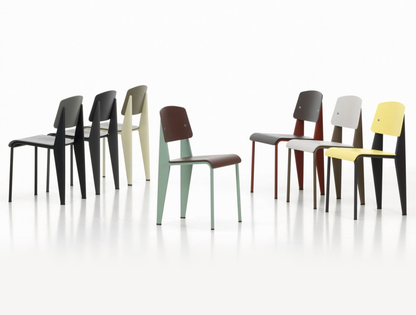 标准SP(SiègeenPlastique)从过去到现在构建了一座桥梁,使这款标志性的椅子具有现代外观而不改变其形状:由坚固的塑料制成,标准SP的座椅表面和靠背采用精细调制颜色的调色板。 粉末涂层底座的耐用哑光表面与椅子的塑料表面相匹配。