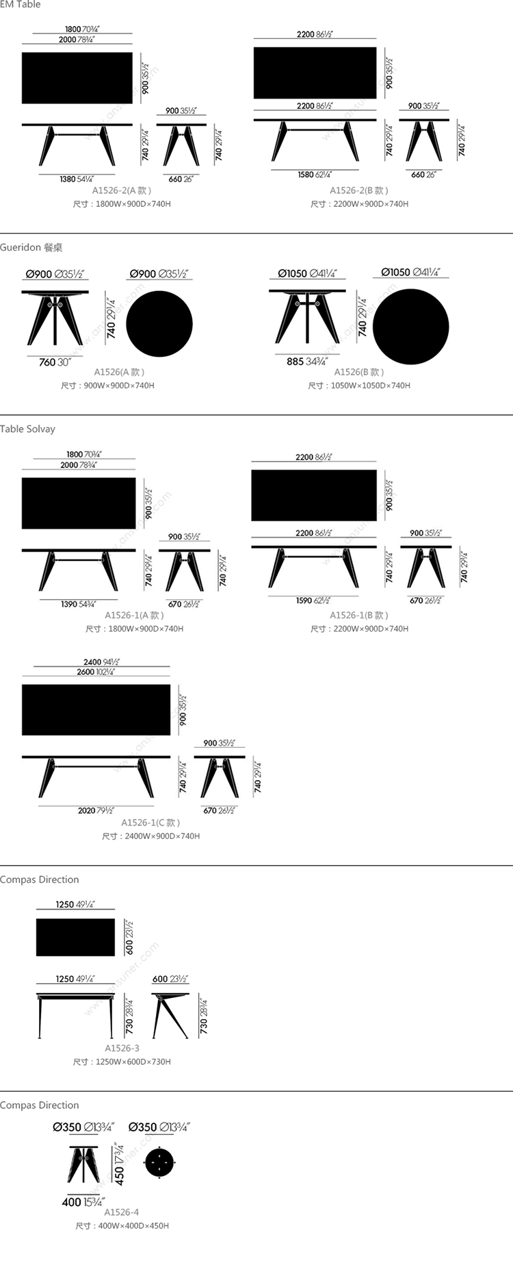 EM Table 系列尺寸/示意图
