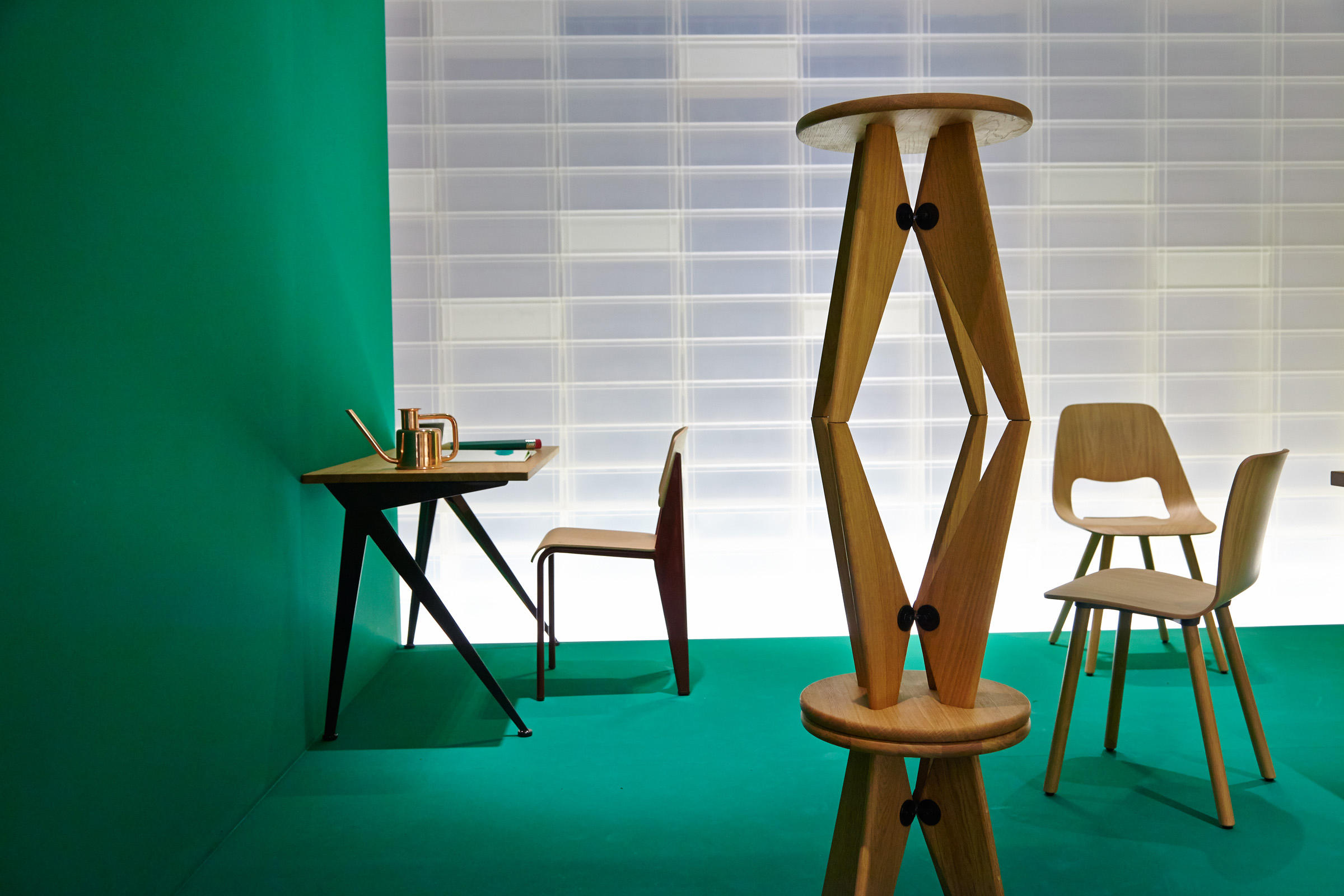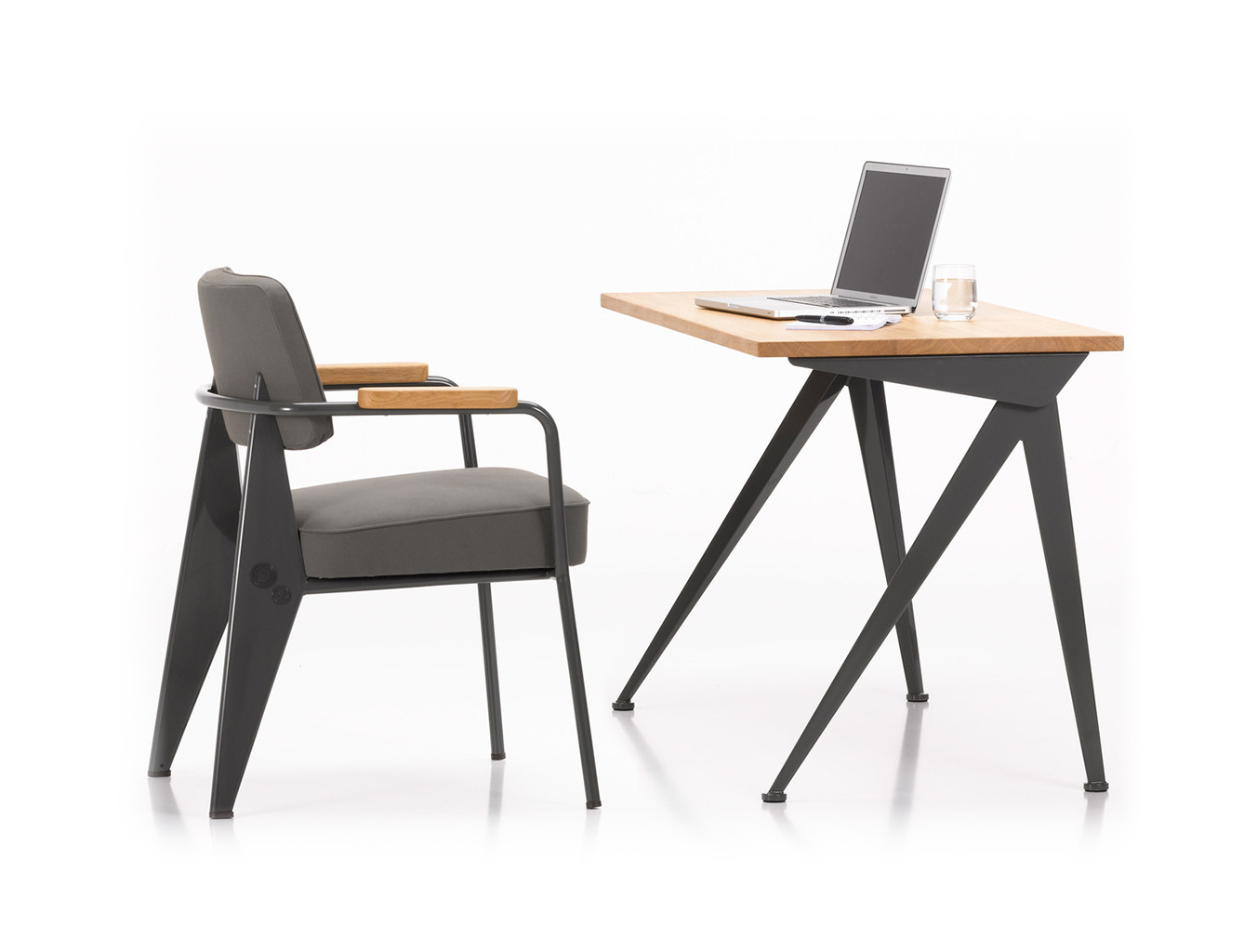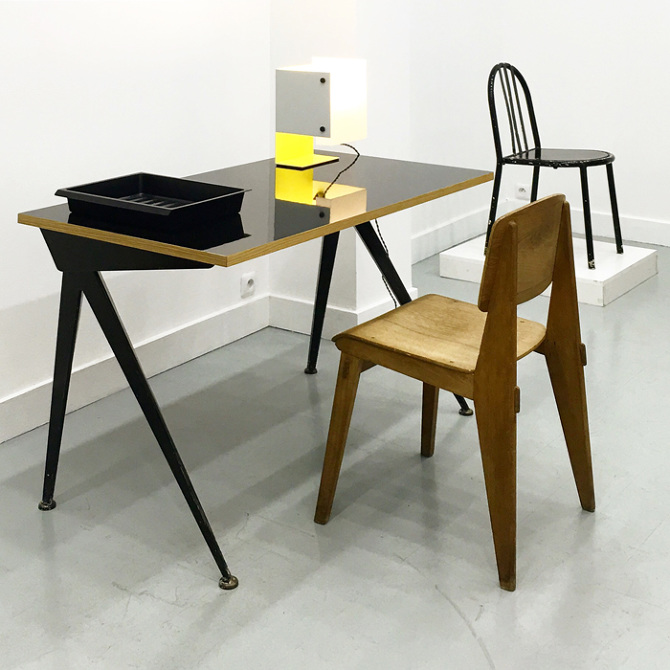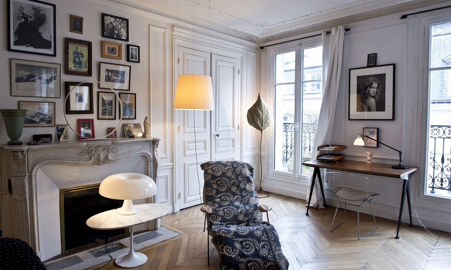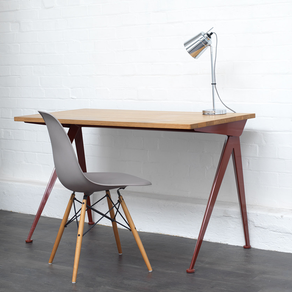 由JeanProuvé设计的Compas Direction办公桌,优雅的金属腿让人想起指南针的铰链臂 - 法语中的“le compas”。 他们的设计基于工程原理,代表了法国设计师和工程师的结构方法。 与涂油的实木桌面搭配,它们在家庭办公室形成了丰富的对比材料组合。