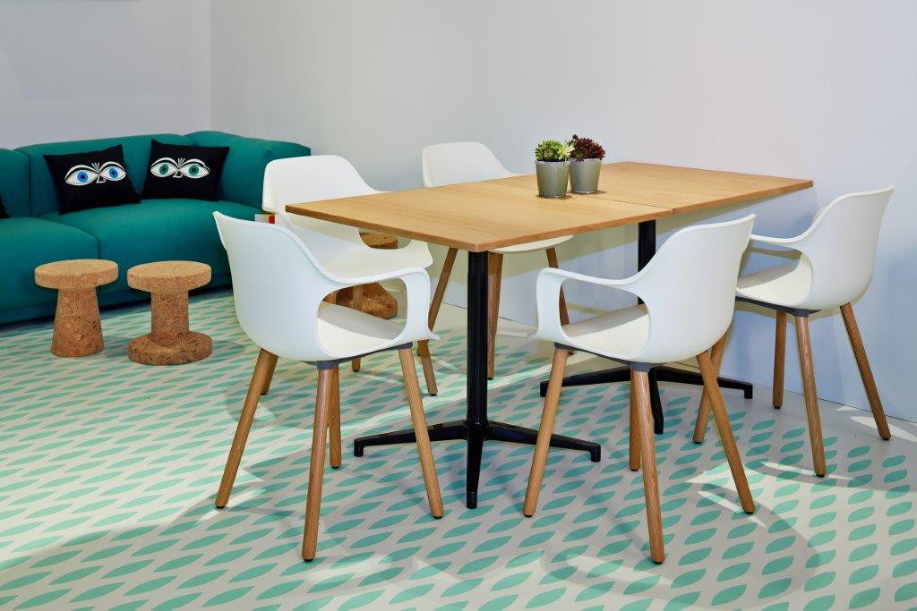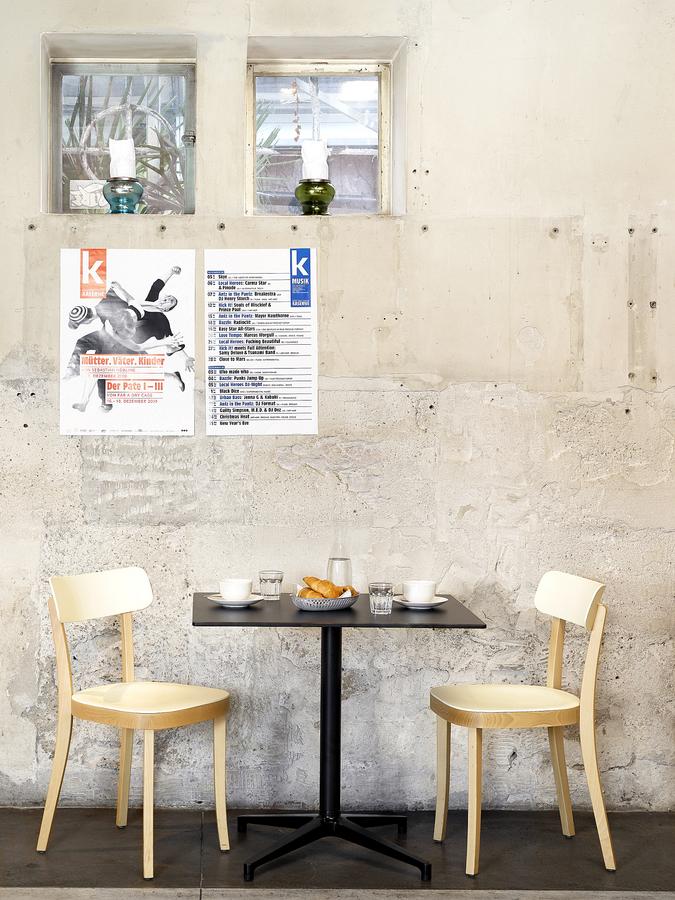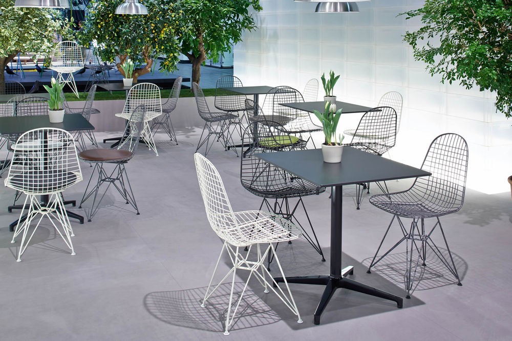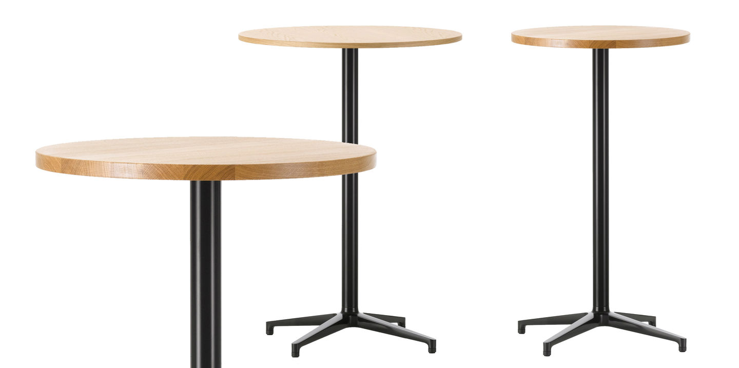 Ronan和Erwan Bouroullec的Bistro Table(2009/2010)拥有优雅的十字形底座和低调的设计,也适合户外使用,配有坚固的核心桌面。