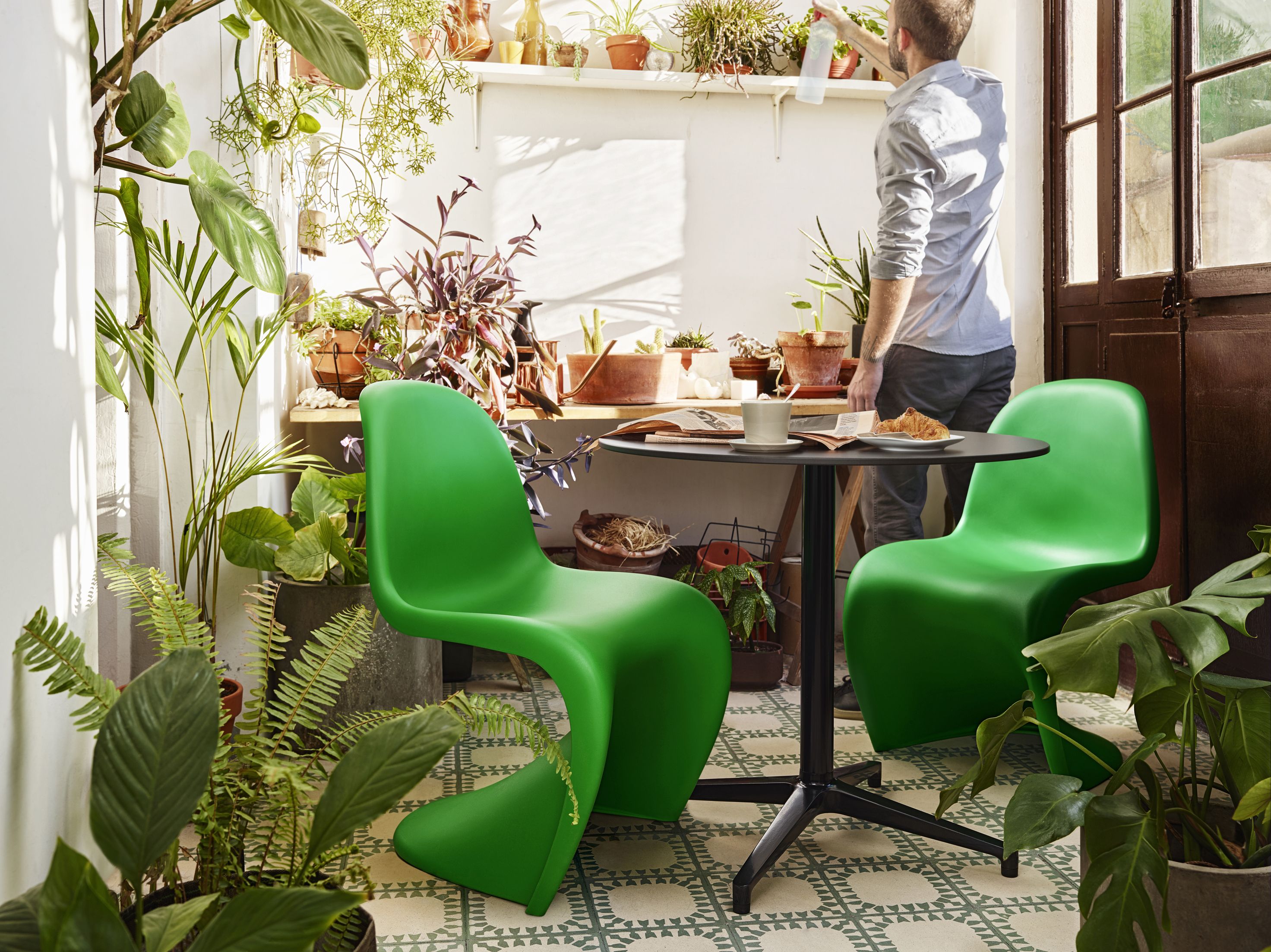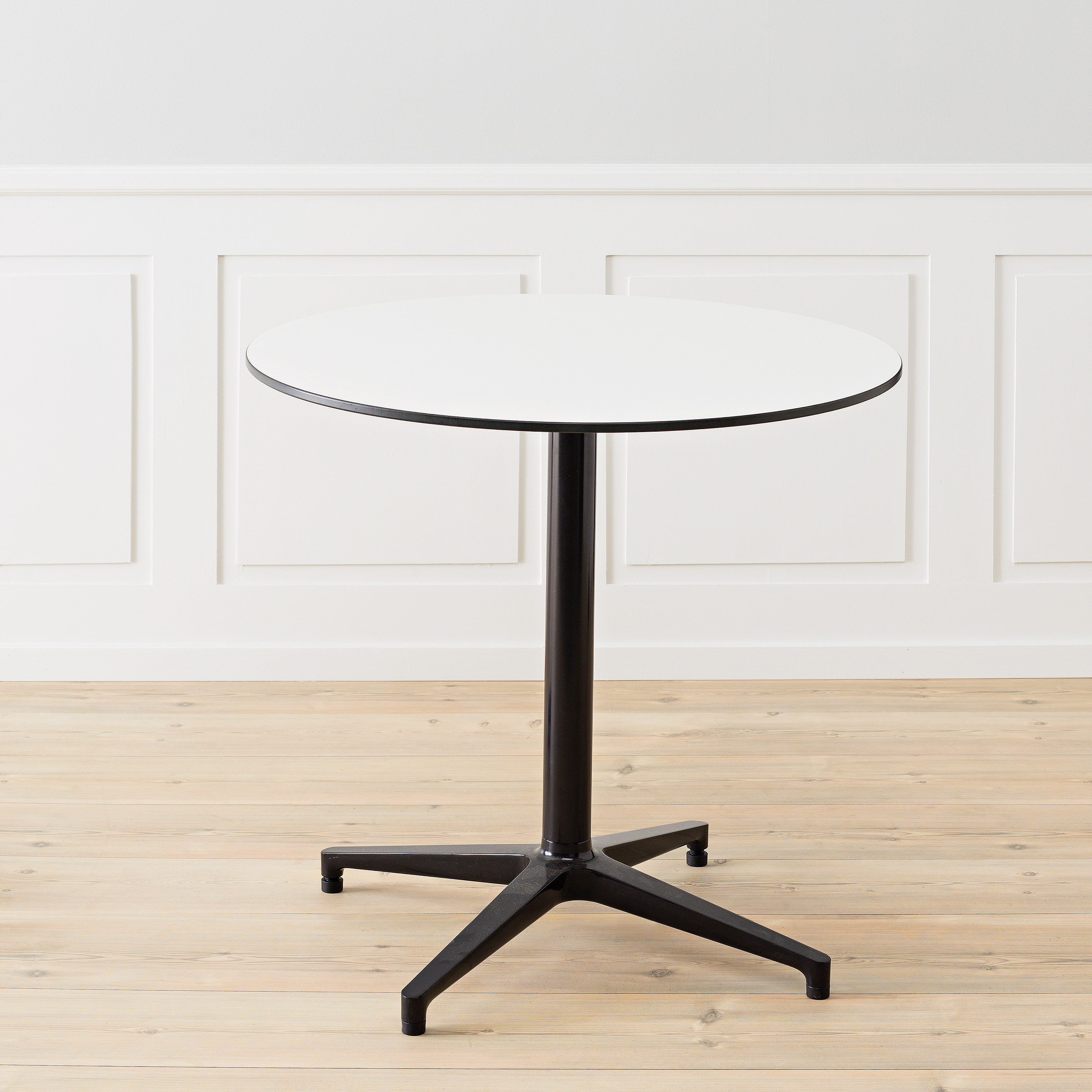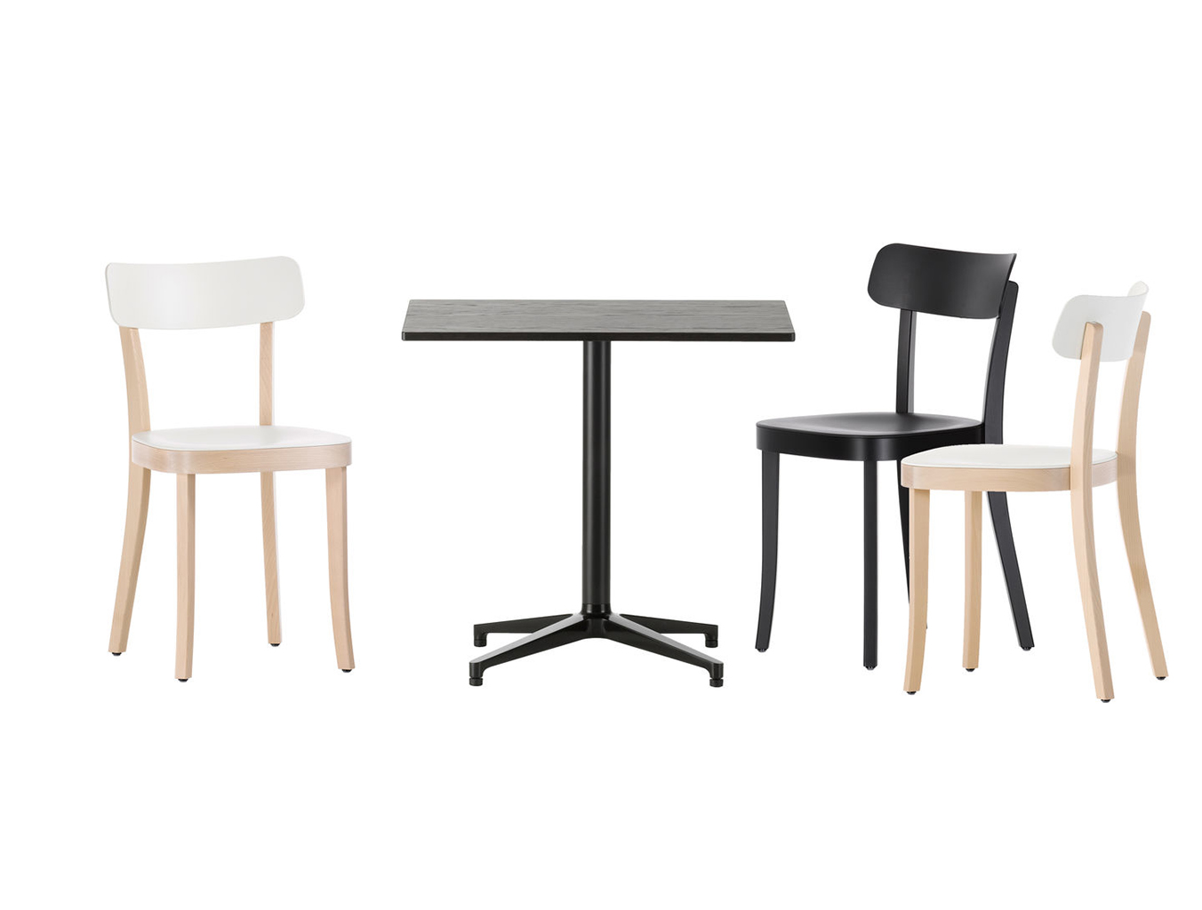 Ronan和Erwan Bouroullec的Bistro Table(2009/2010)拥有优雅的十字形底座和低调的设计,也适合户外使用,配有坚固的核心桌面。