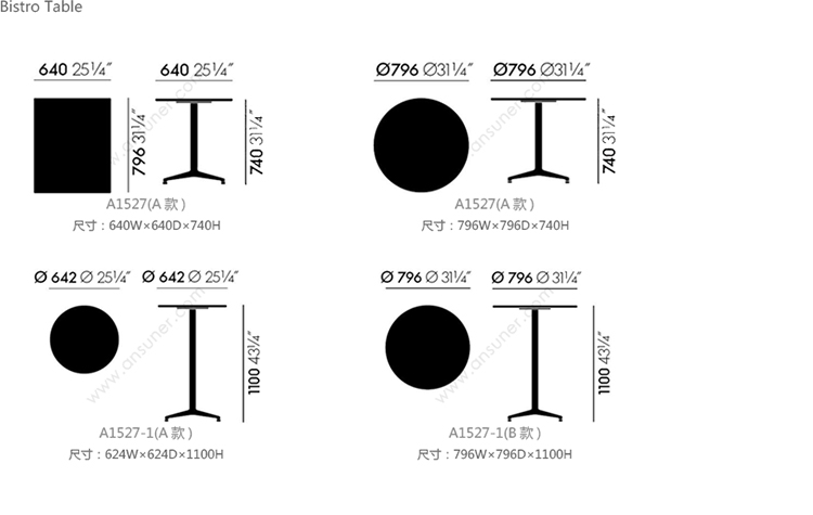 Bistro Table 系列尺寸/示意图