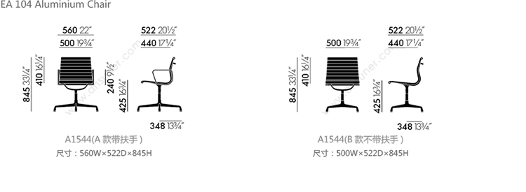 EA 104 会议椅 系列尺寸/示意图