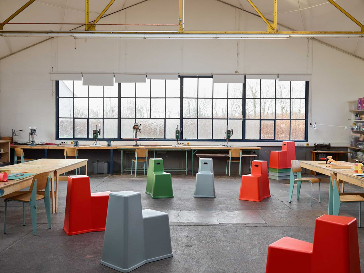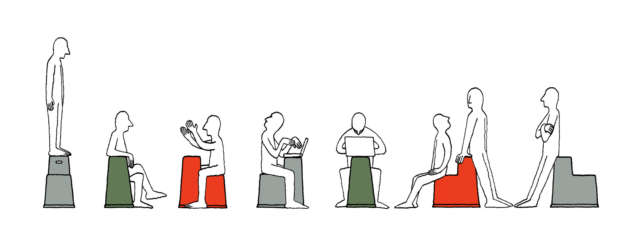 通过其阶梯式平台,Stool-Tool将椅子和桌子组合在同一个对象中。 它允许在空间中设置多个座位和方向,其桌面式靠背可用作小型工作或存储表面。 这种多功能性使得Stool-Tool成为一种多功能办公家具,可为任何工作空间增添价值。 Stool-Tool完美适应各种环境,从公共场所到办公室的小型公共区域,从车间和会议室到角落和间隙,否则将无法使用。