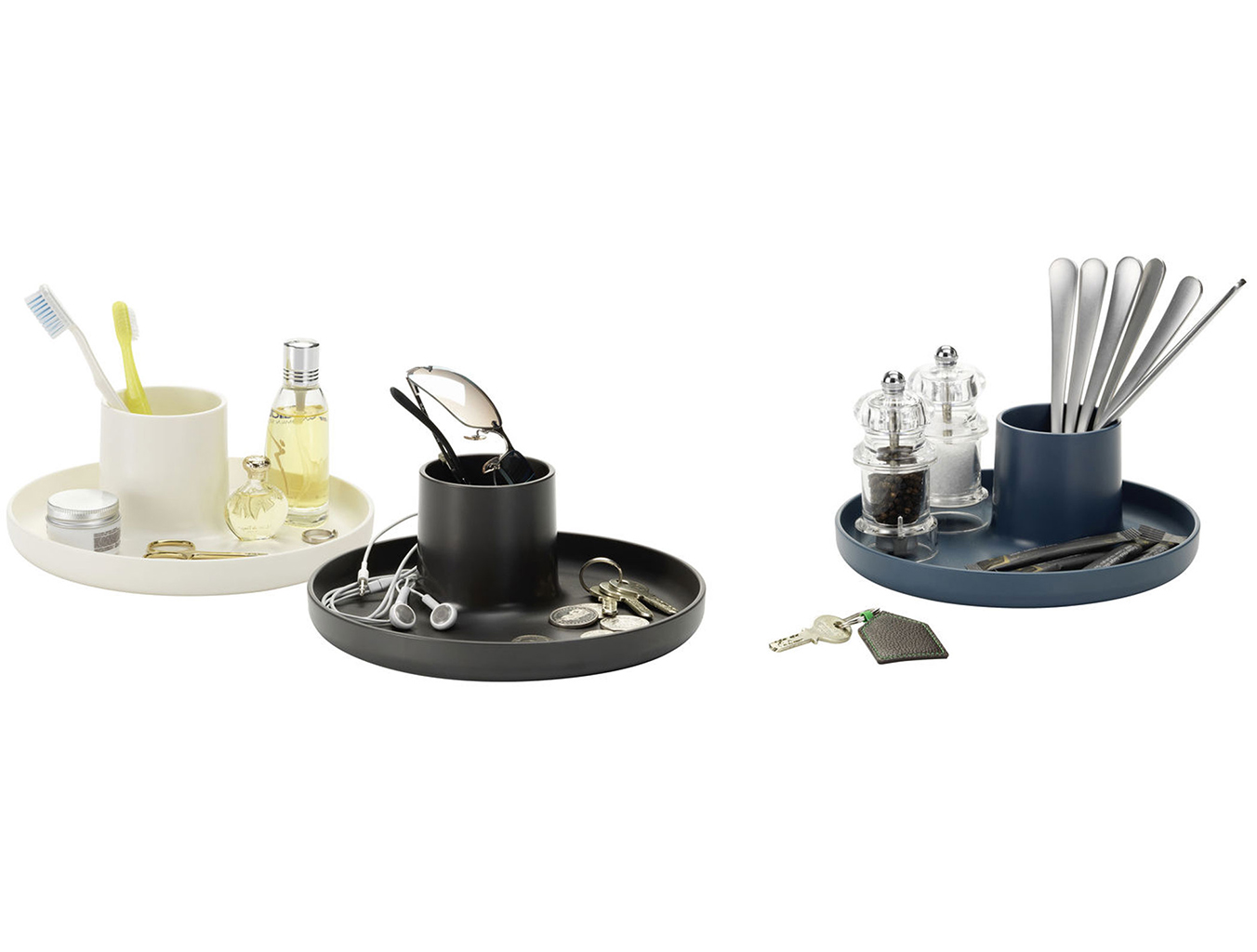 O-Tidy是一种实用的多功能存储容器。 该设计不仅提供托盘和杯子功能,而且还将其简单的形状组合成一个新的,完美比例的物体。