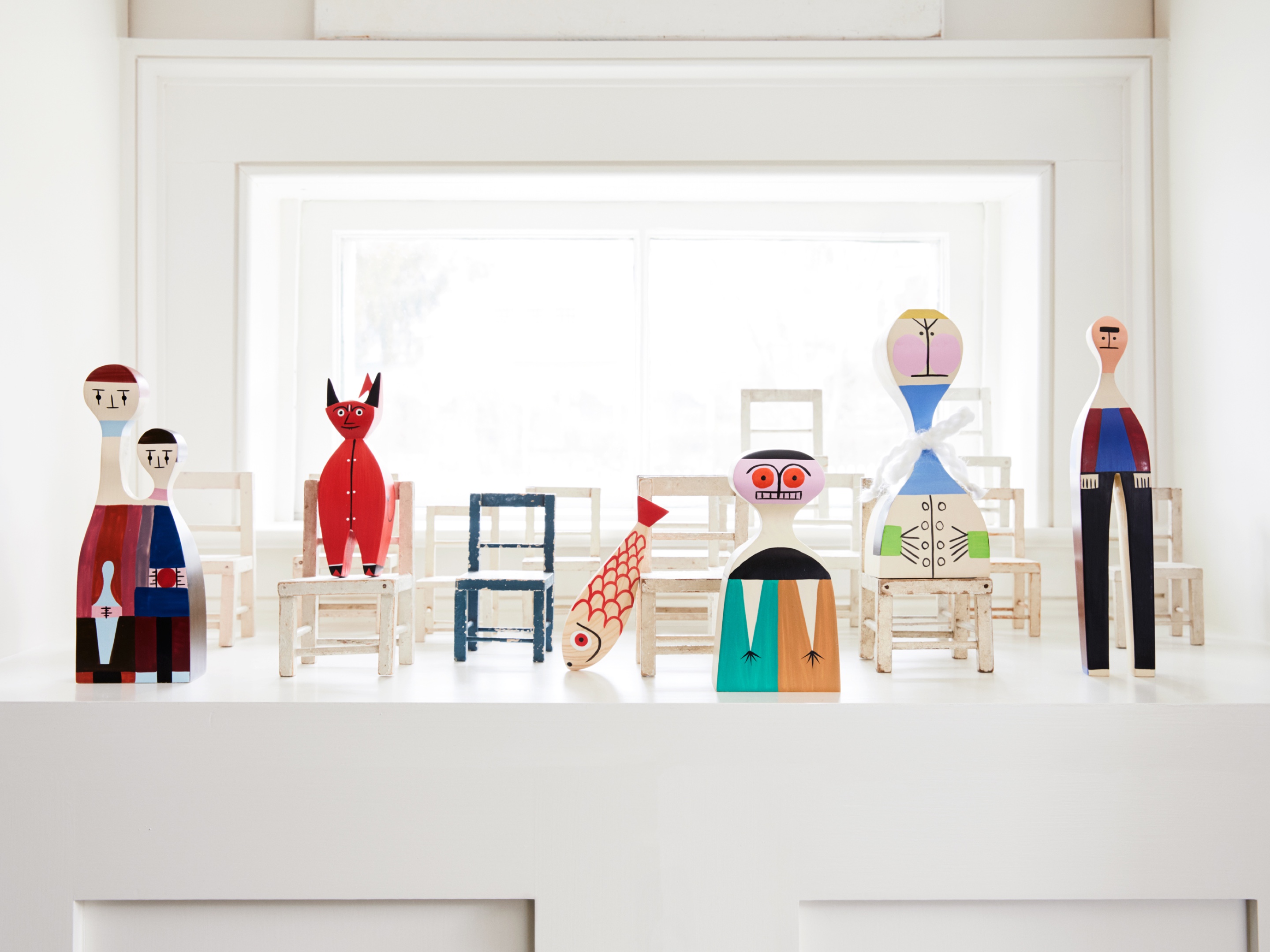 Alexander Girard的木制娃娃是一个代表人类和动物角色的大型木制家族。 吉拉德于1953年设计了他们作为圣达菲家中的装饰物品。 这些原件是维特拉设计博物馆馆藏的吉拉德庄园的一部分,作为当前重新版本的模型。 精确地复制到最后的细节,许多不同的木制娃娃今天仍然是手工制作和绘制的,就像Alexander Girard的复古作品一样。 即使它们之间的差异非常微小:每个木制人物都是独特的个性化产品,真正独一无二。
