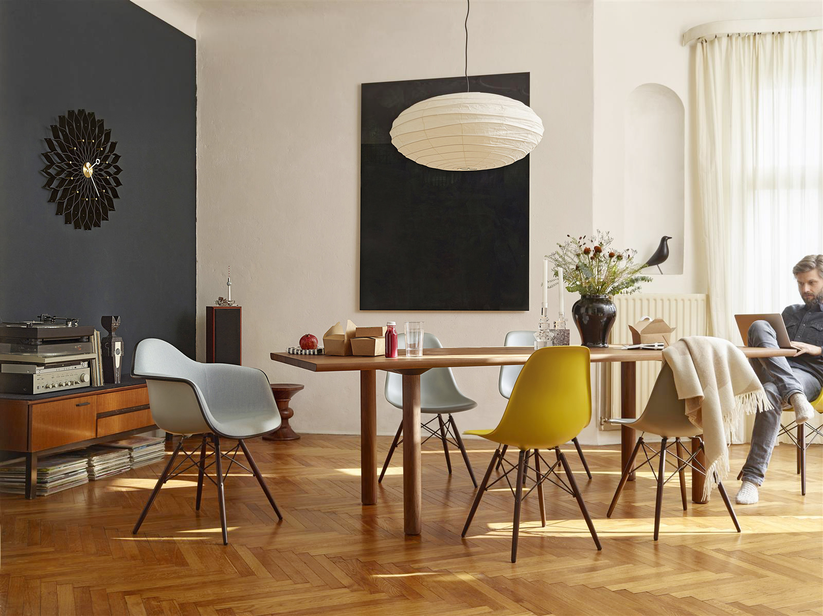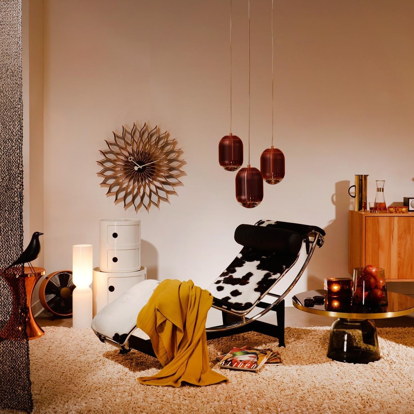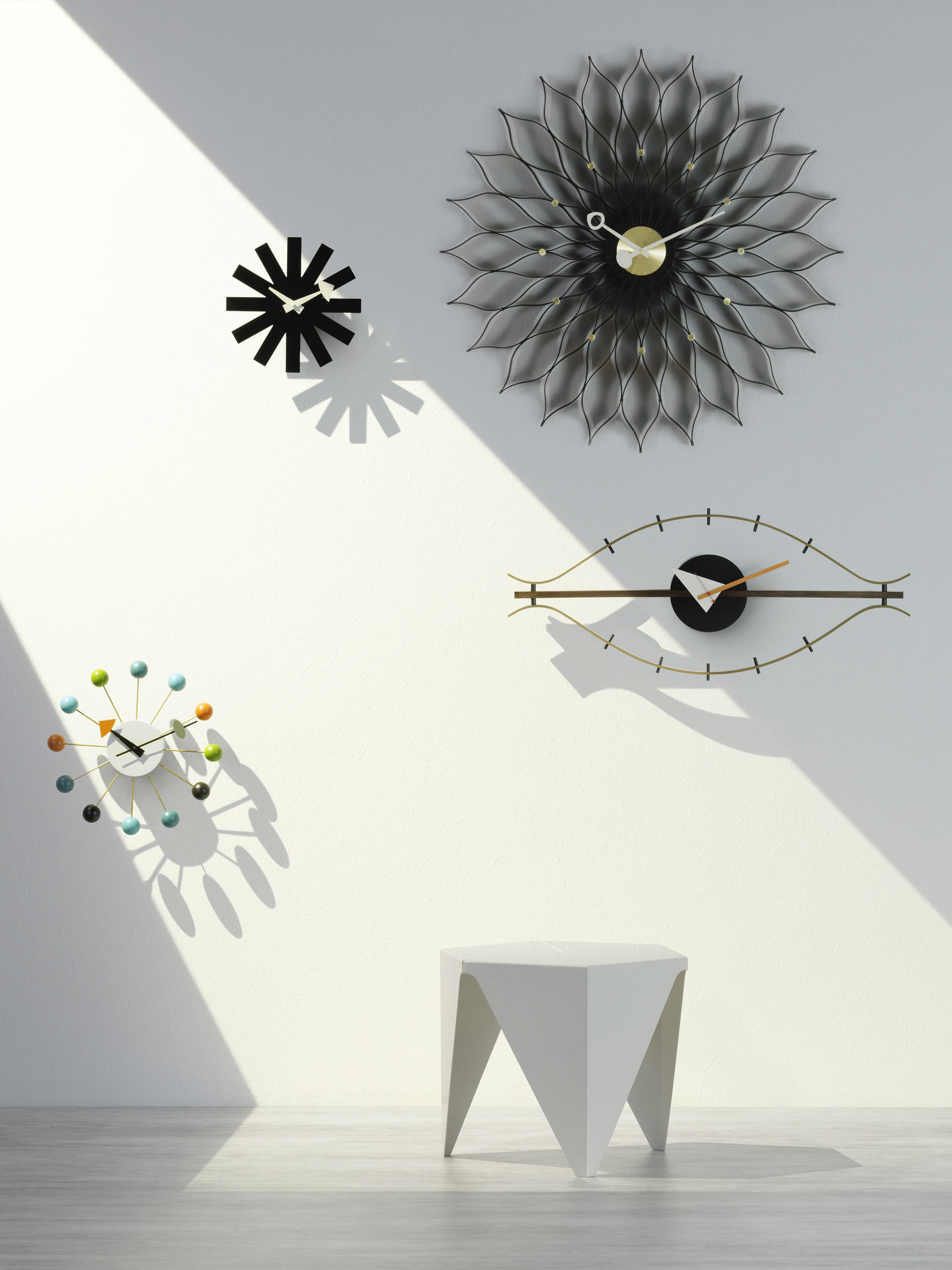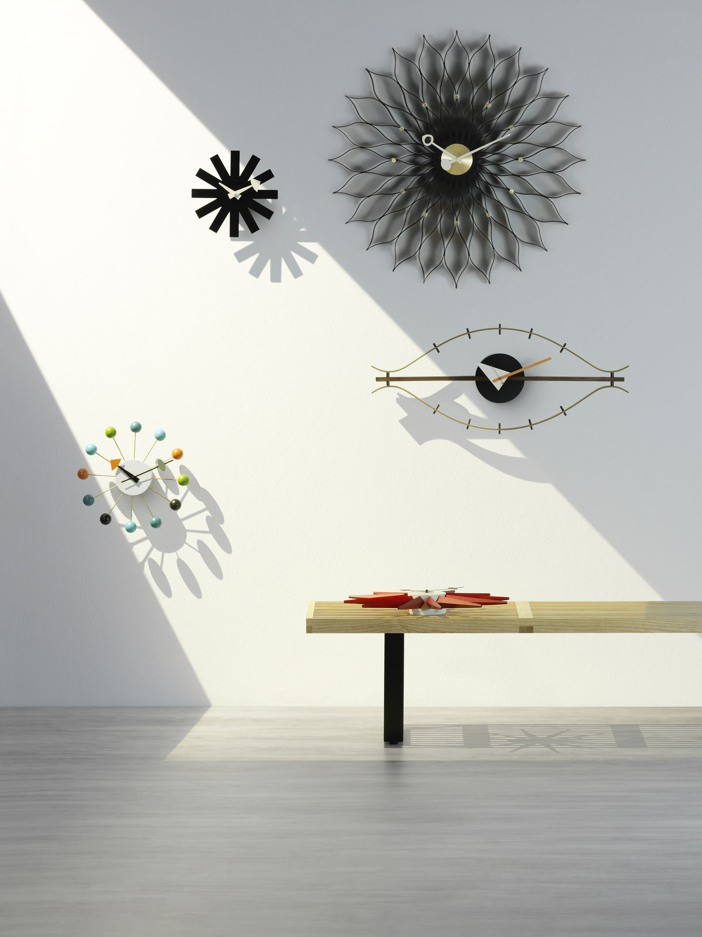 信仰进步和日益增长的经济繁荣是1950年左右美国生活方式的核心方面。一切似乎都有可能,人们努力做到“现代”。 为了将现代设计融入美国家庭,乔治·尼尔森构思了各种日常用品:灯具,钟表和其他家居饰品。 直到20世纪70年代,尼尔森办公室为家庭创造了许多不同的物品,包括泡泡灯和球钟,它们成为了本世纪中期现代设计的象征。