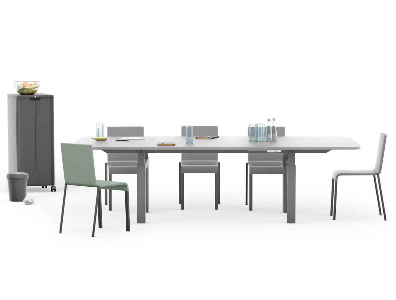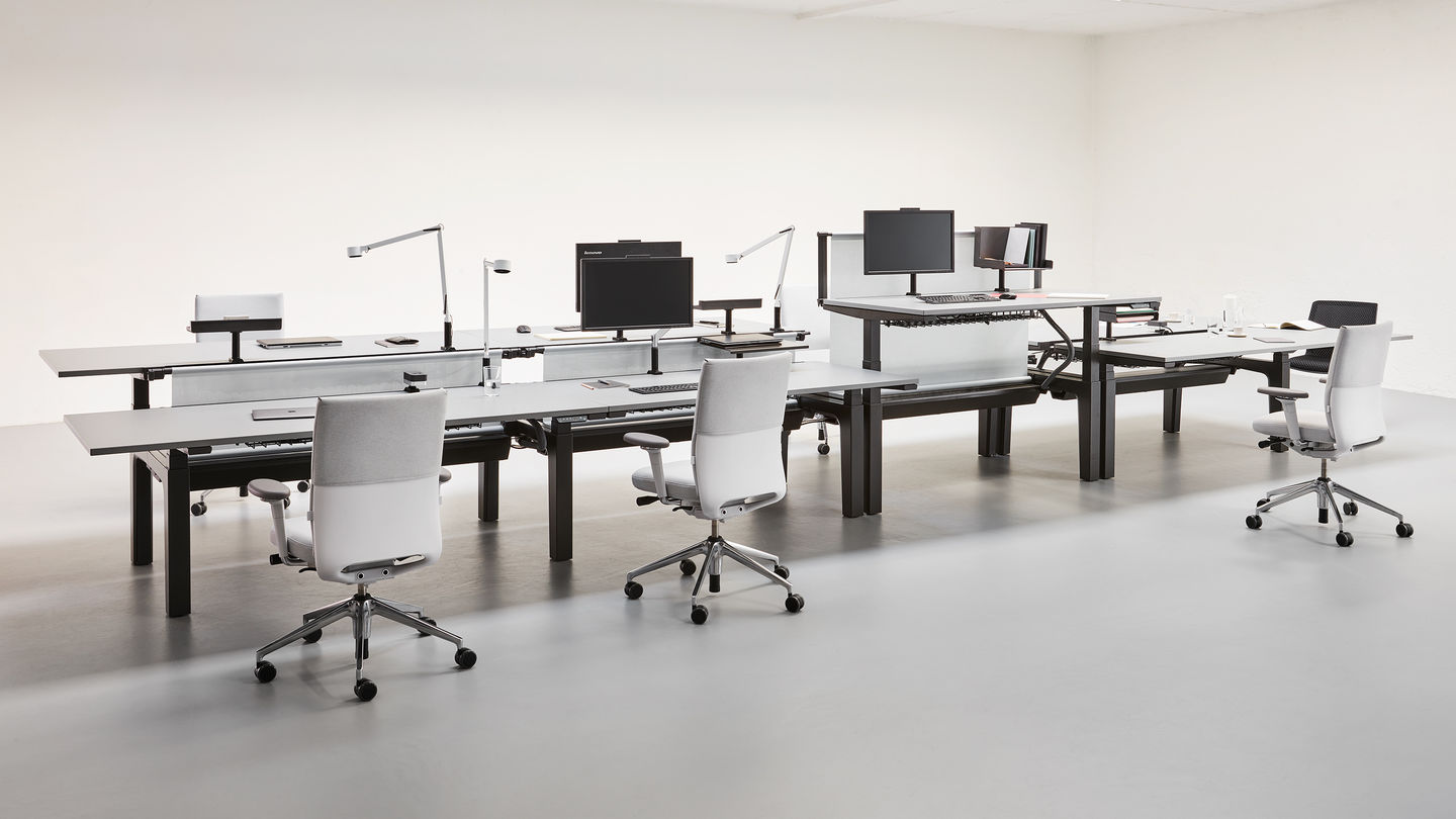 模块化办公桌系统CDS可以配置为单独的桌子,多个工作站的集群,宽敞的工作台或各种尺寸的会议桌。 所有产品均可在固定高度或手动或电动坐式解决方案中使用。 该系统采用标准底座设计,大部分预装有折叠腿。 这使得CDS能够满足对规划,使用,物流,装配和维护灵活性的最严格要求。