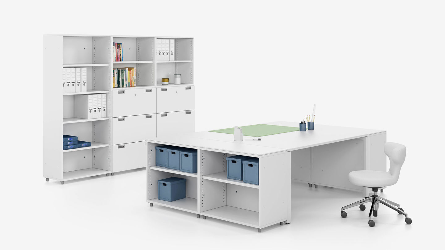 Arik Levy的储物柜系列可与所有Vitra办公家具系统配合使用。 各种宽度和高度的橱柜和侧板结合在一起,提供多种可配置的存储选项,可轻松组装,转换和拆卸。