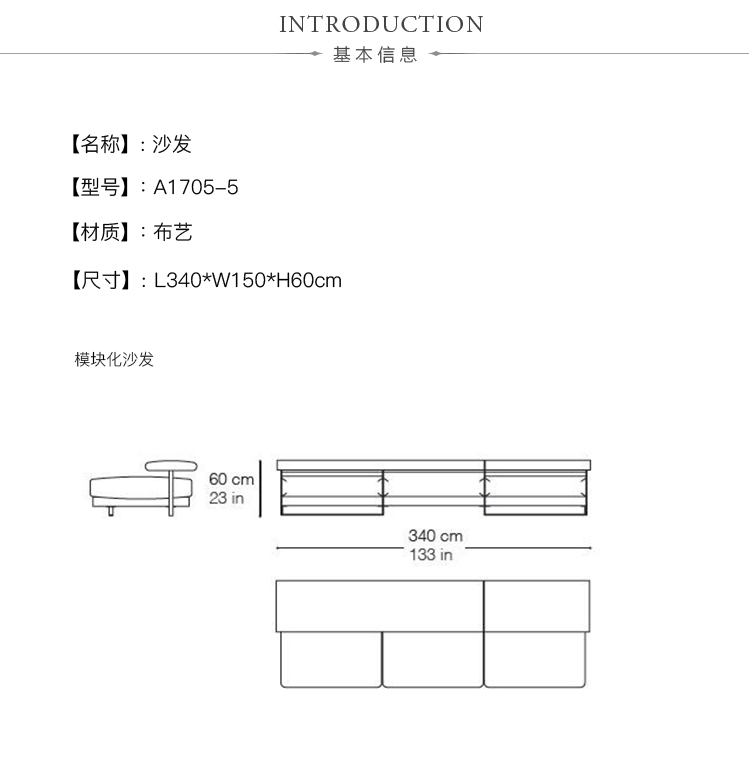 L340*W150*H60cm