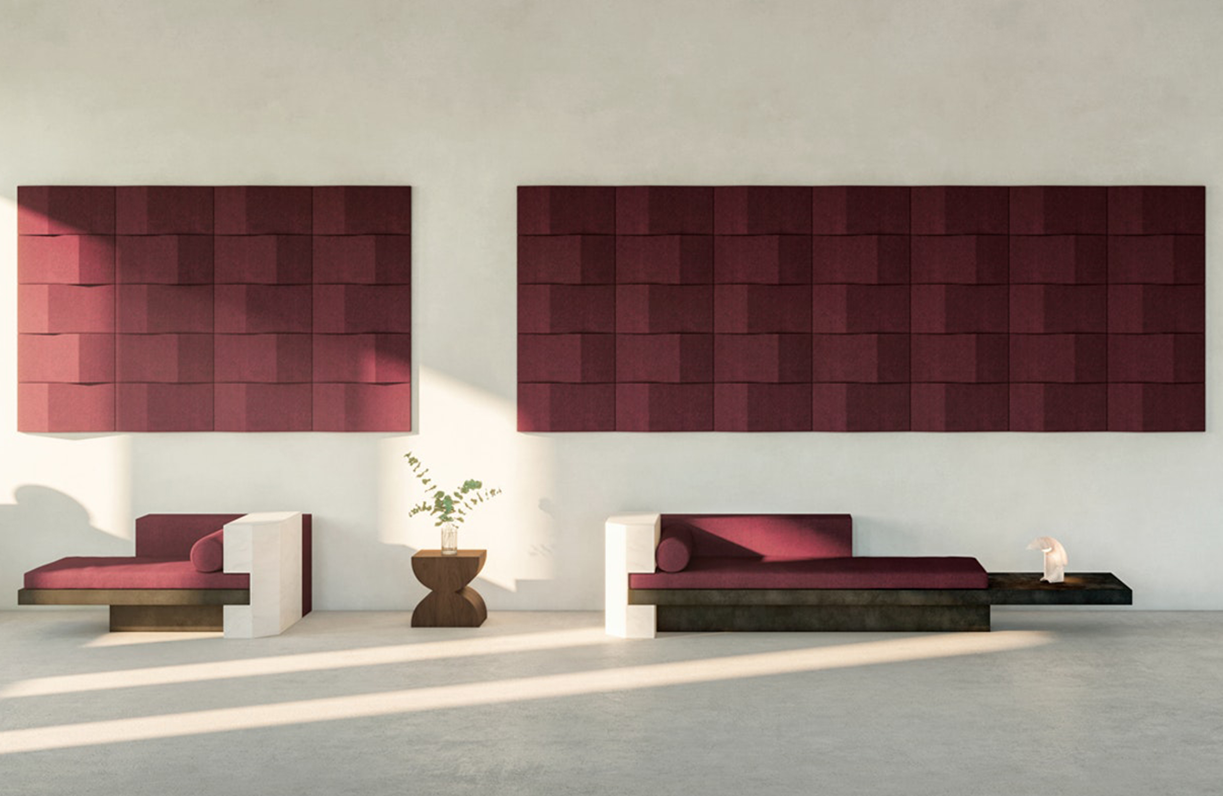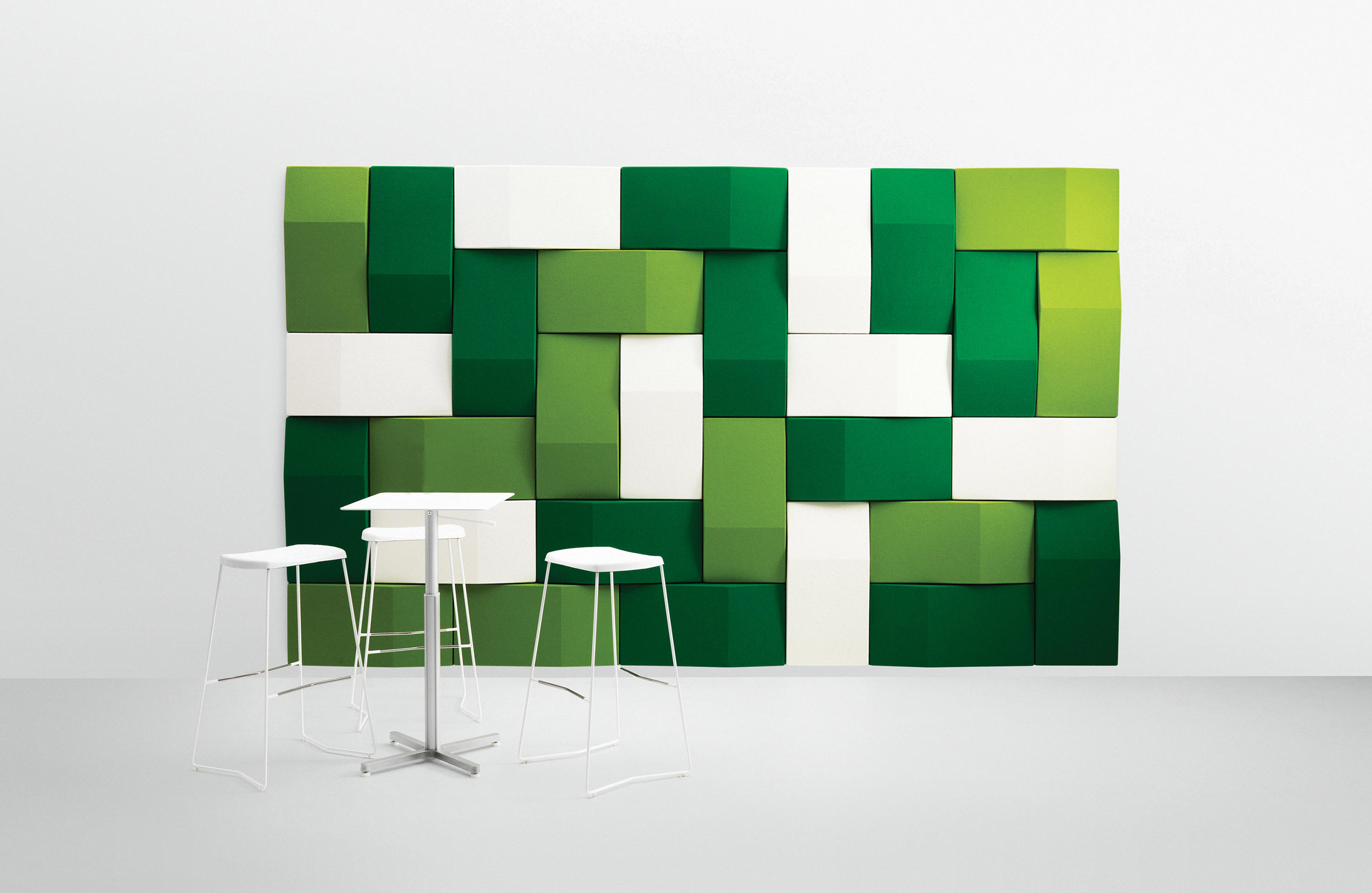 Triline Wall吸收并散发令人不快的声音反射,从而改善声学效果。由于模块具有直边,因此它们非常适合创建图案以覆盖大面积的墙面空间。每个模块包括安装在MDF板框架上的吸音再循环填充物。可见侧面采用羊毛织物装饰。该产品具有特有的三角形形状,可以打破击中模块的声波。由于采用隐藏式钢支架,产品可水平或垂直安装。