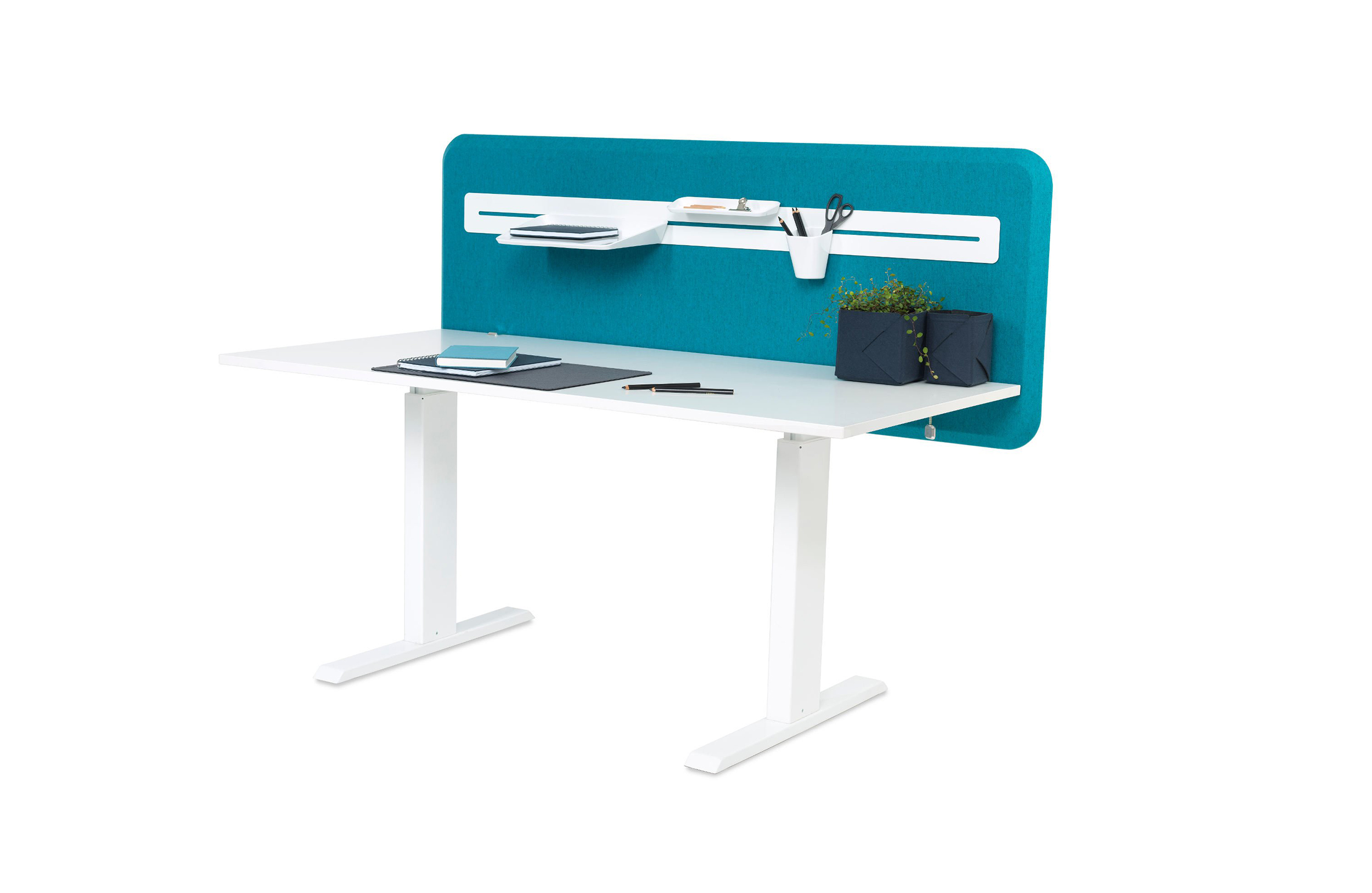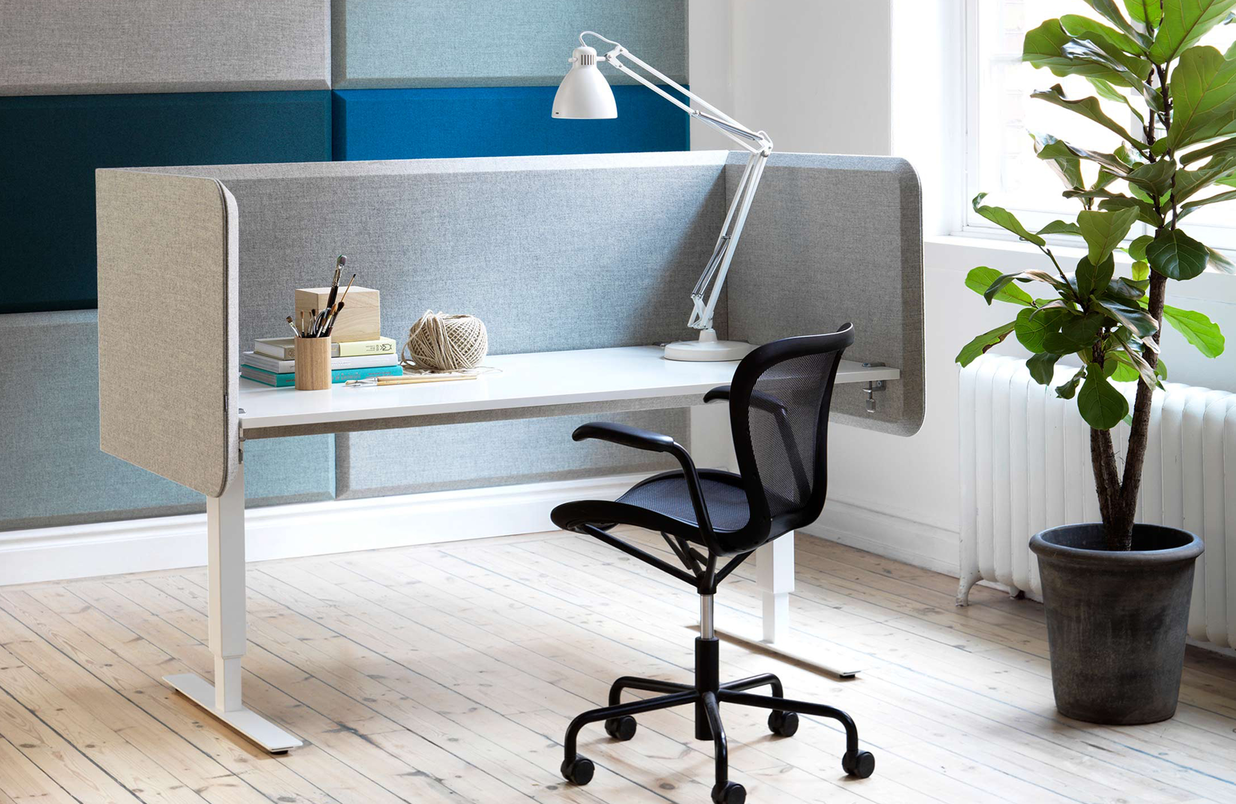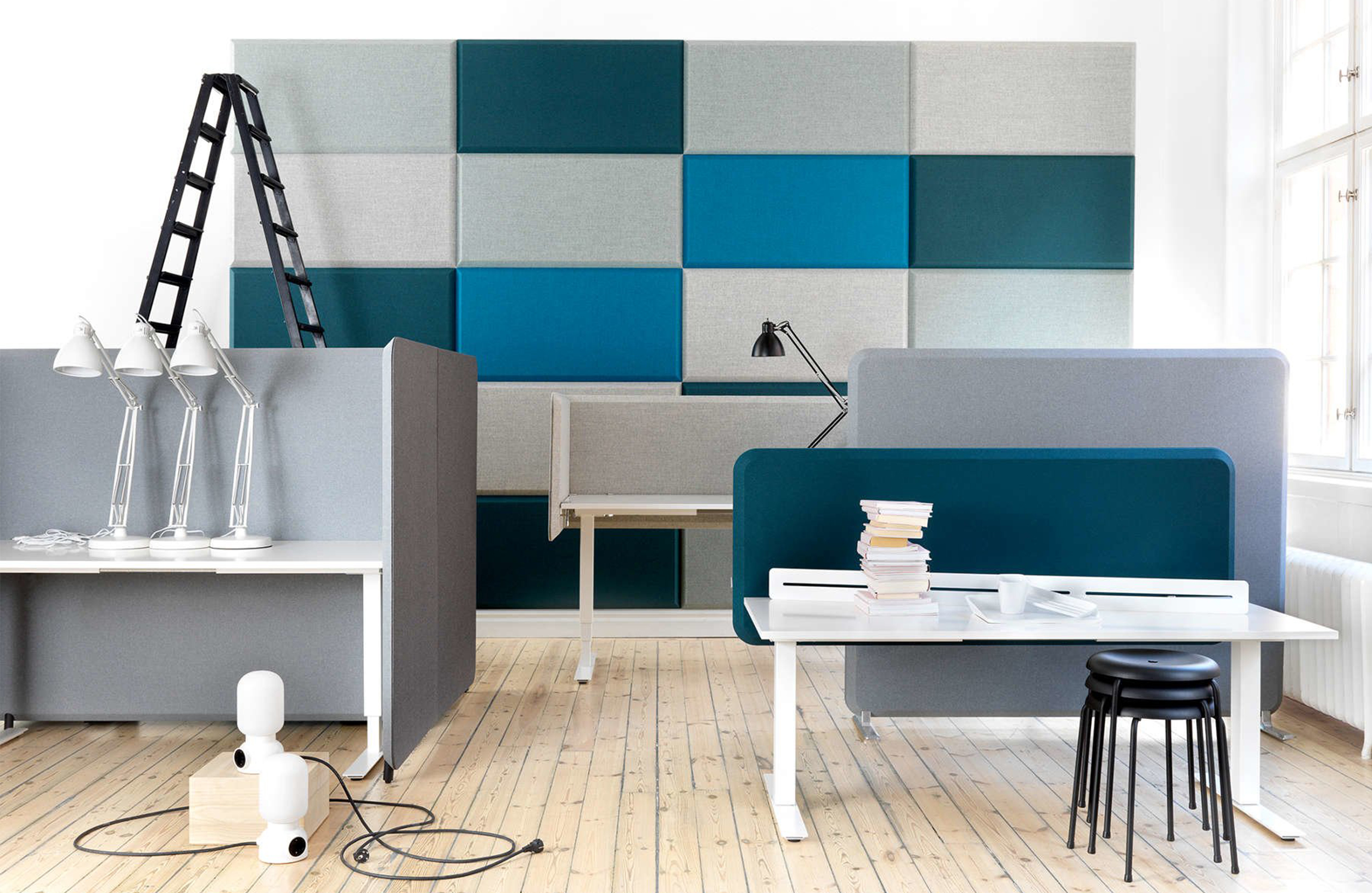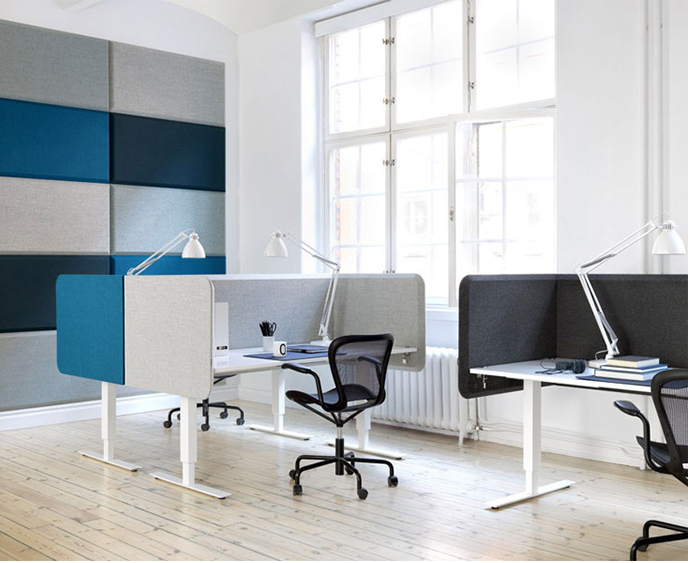 Abstracta的Domo系列具有简约而经典的外观,具有许多智能细节。其独特的斜面边缘营造出独特的动感表现:斜面捕捉光线,在两个屏幕之间创造阴影和清晰的连接。桌面屏幕由安装在实木框架内的吸音填料组成。屏幕两侧均采用布料装饰。屏幕有两种型号,有方角或圆角。桌面配件由抛光铝制成。