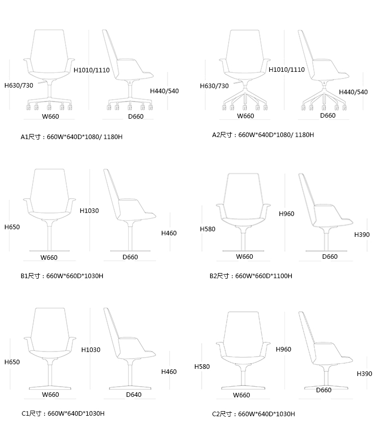 UNO 中班椅/会议椅 系列尺寸/示意图