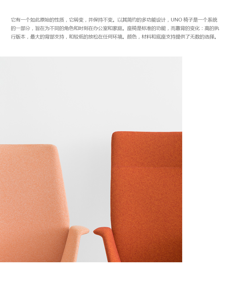 它有一个如此原始的性质,它转变,并保持不变。以其简约的多功能设计,UNO椅子是一个系统的一部分,旨在为不同的角色和时刻在办公室和家庭。座椅是标准的功能,而靠背的变化:高的执行版本,最大的背部支持,和较低的放松在任何环境。颜色,材料和底座支持提供了无数的选择。